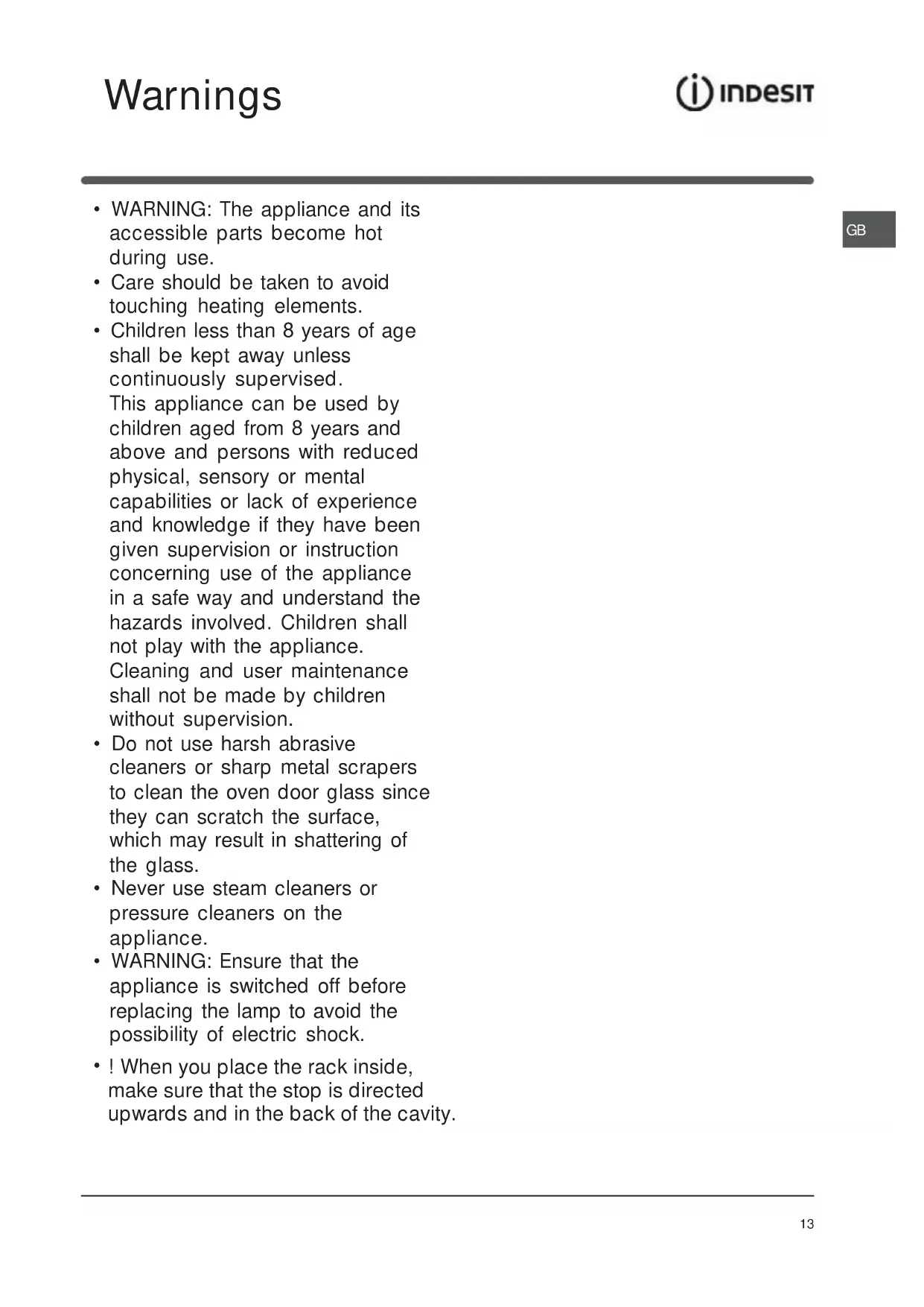 • WARNING: The appliance and its