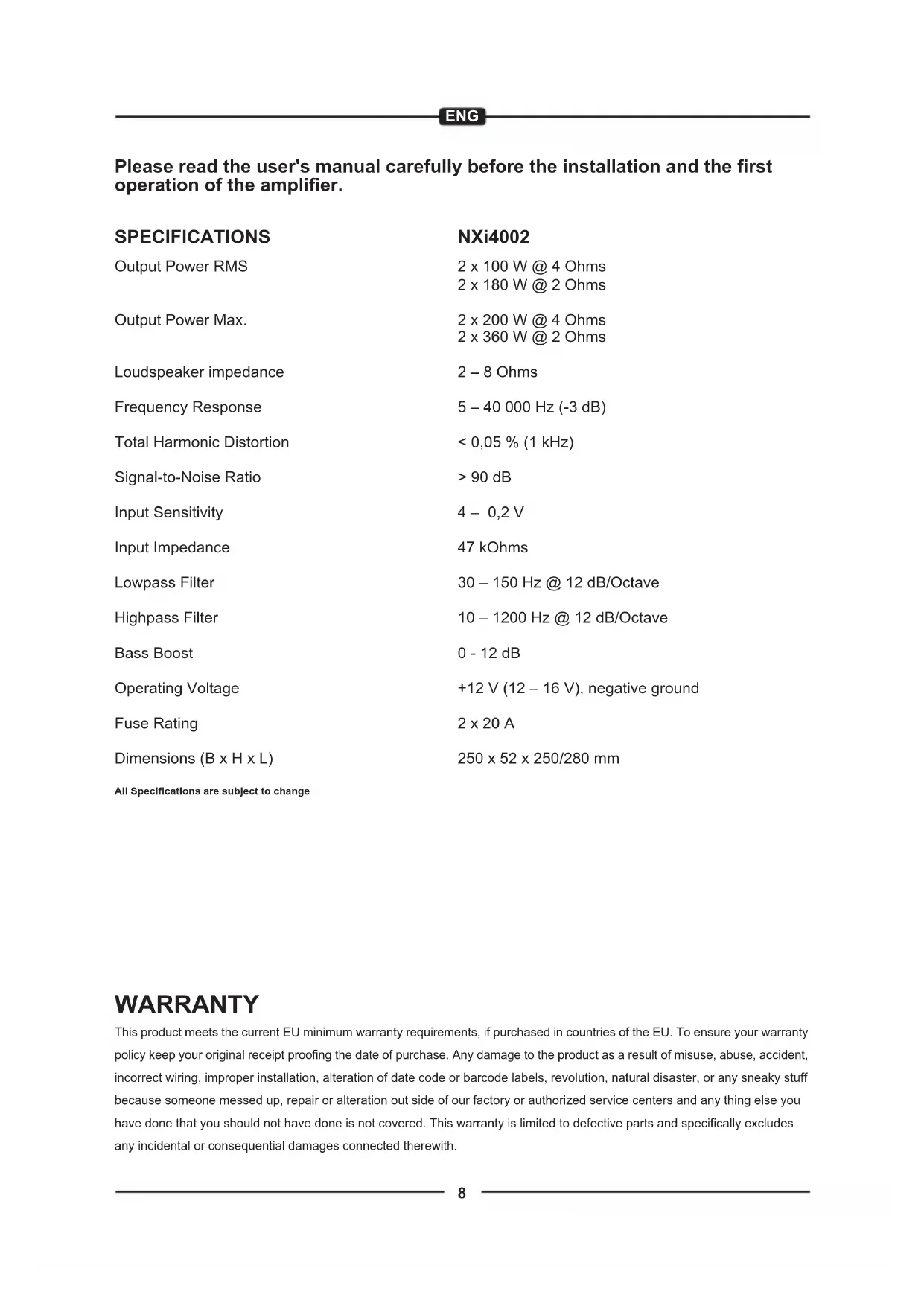USER MANUAL NXi4002 Hifonics