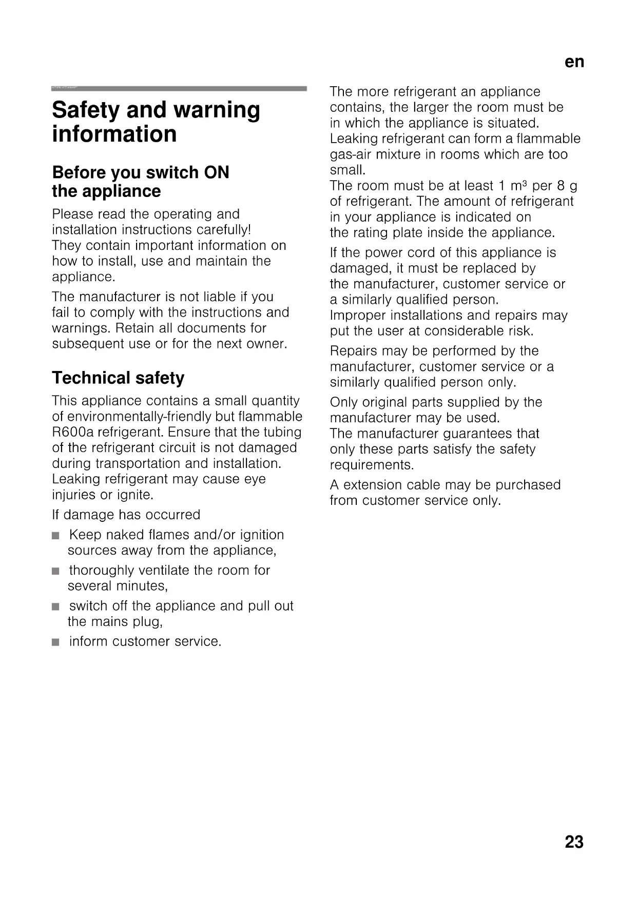 in the appliance. Risk of explosion!