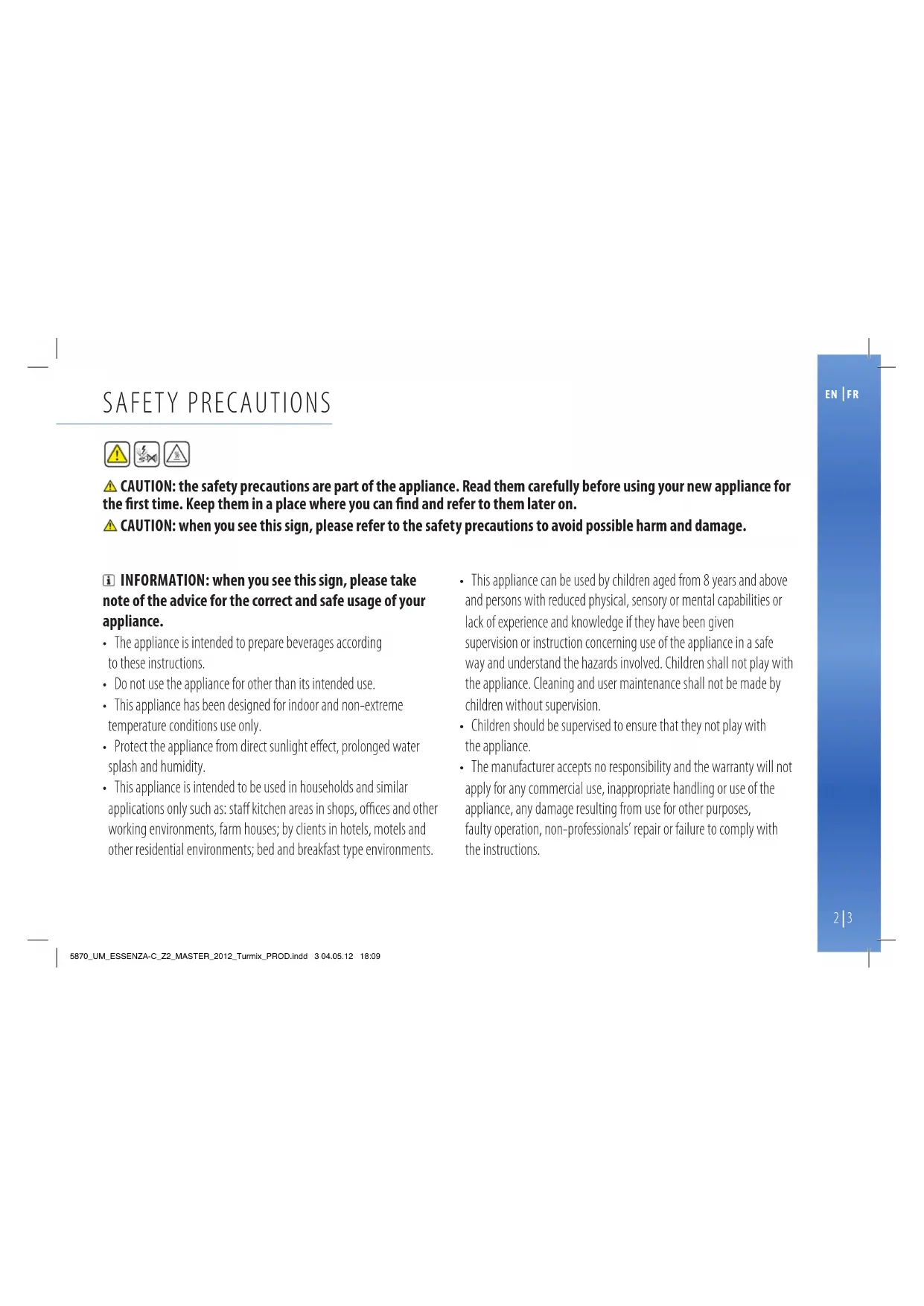 CAUTION: the safety precautions are part of the appliance. Read them carefully before using your new appliance for the first time. Keep them in a place where you can find and refer to them later on.