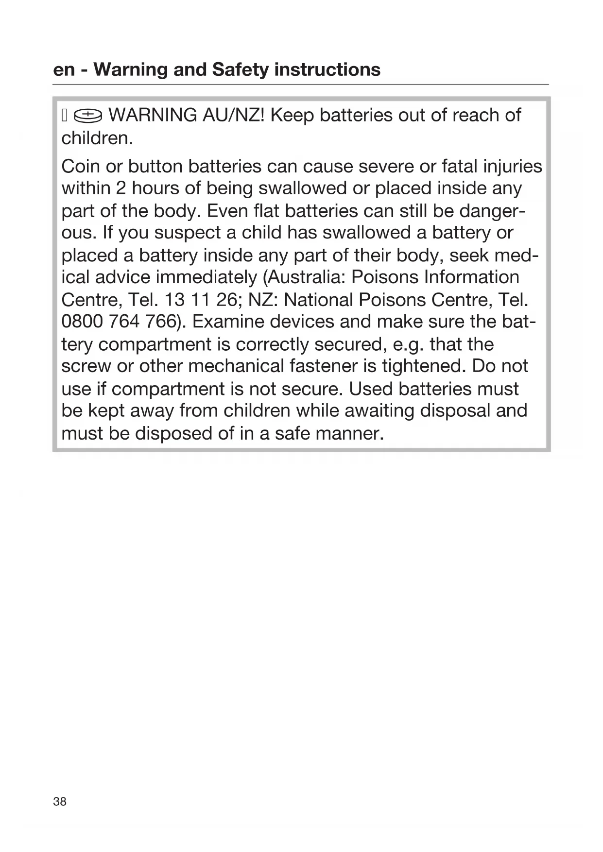 WARNING AU/NZ! Keep batteries out of reach of