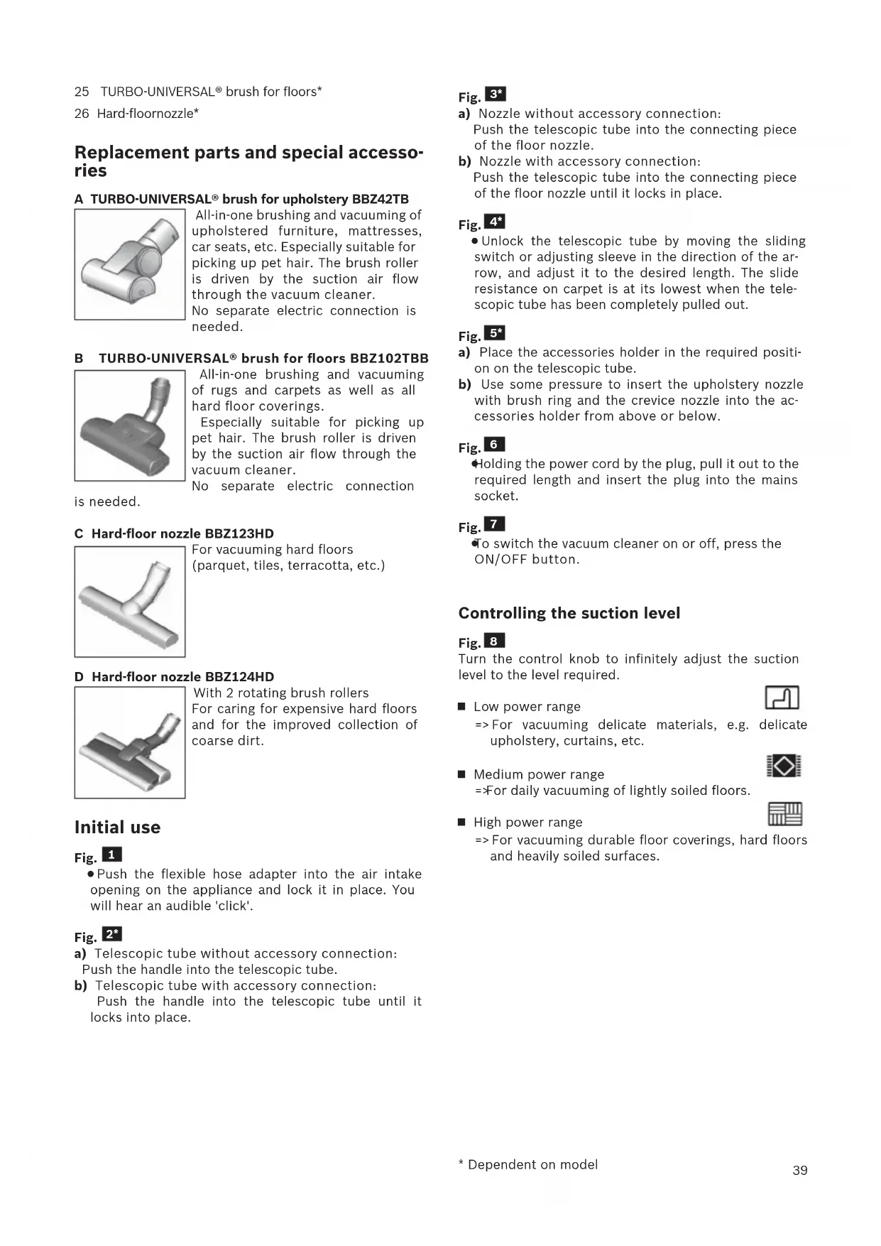 The vacuum cleaner must only be operated with: