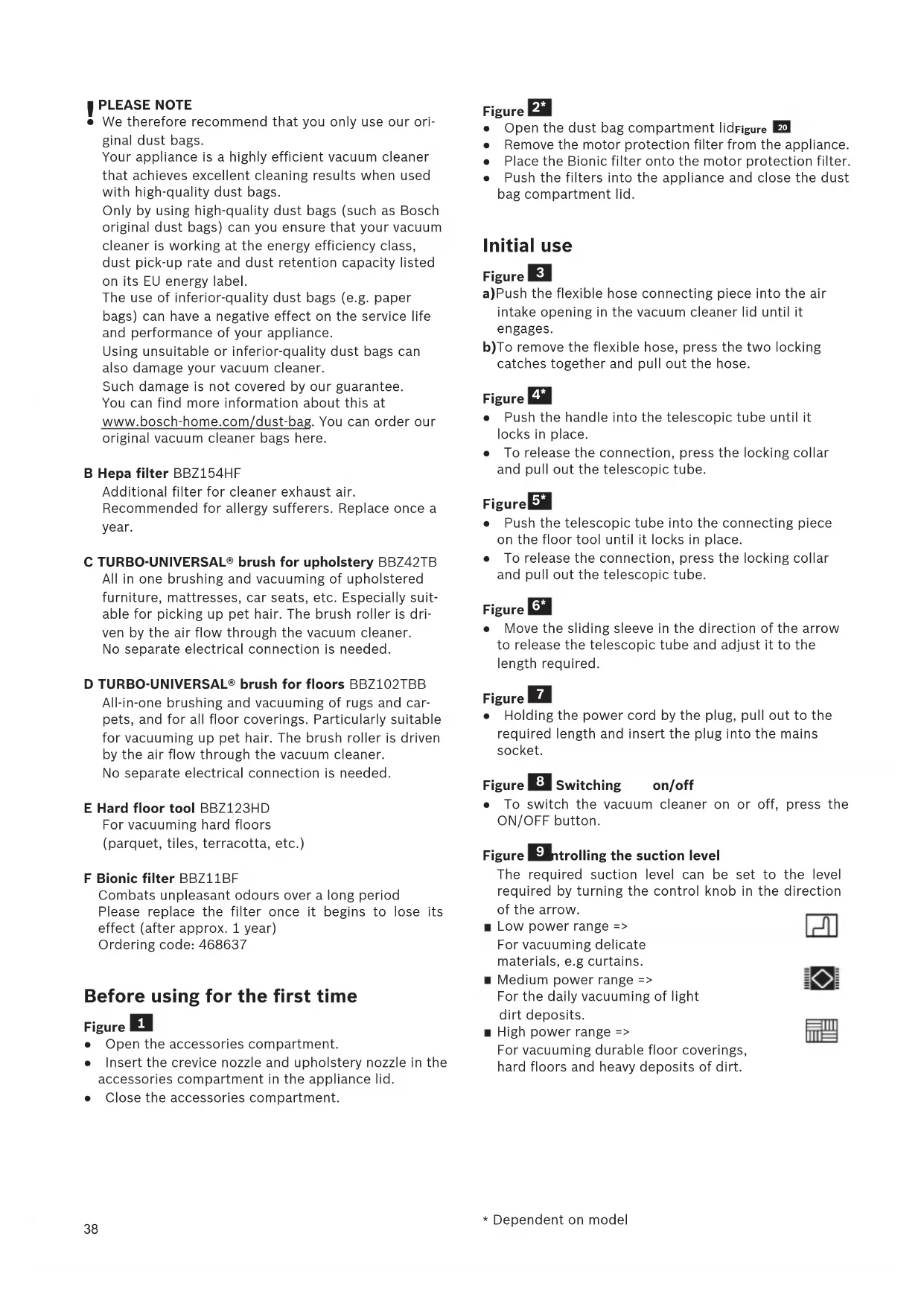 al) accessories and dust bags can damage your vacu-