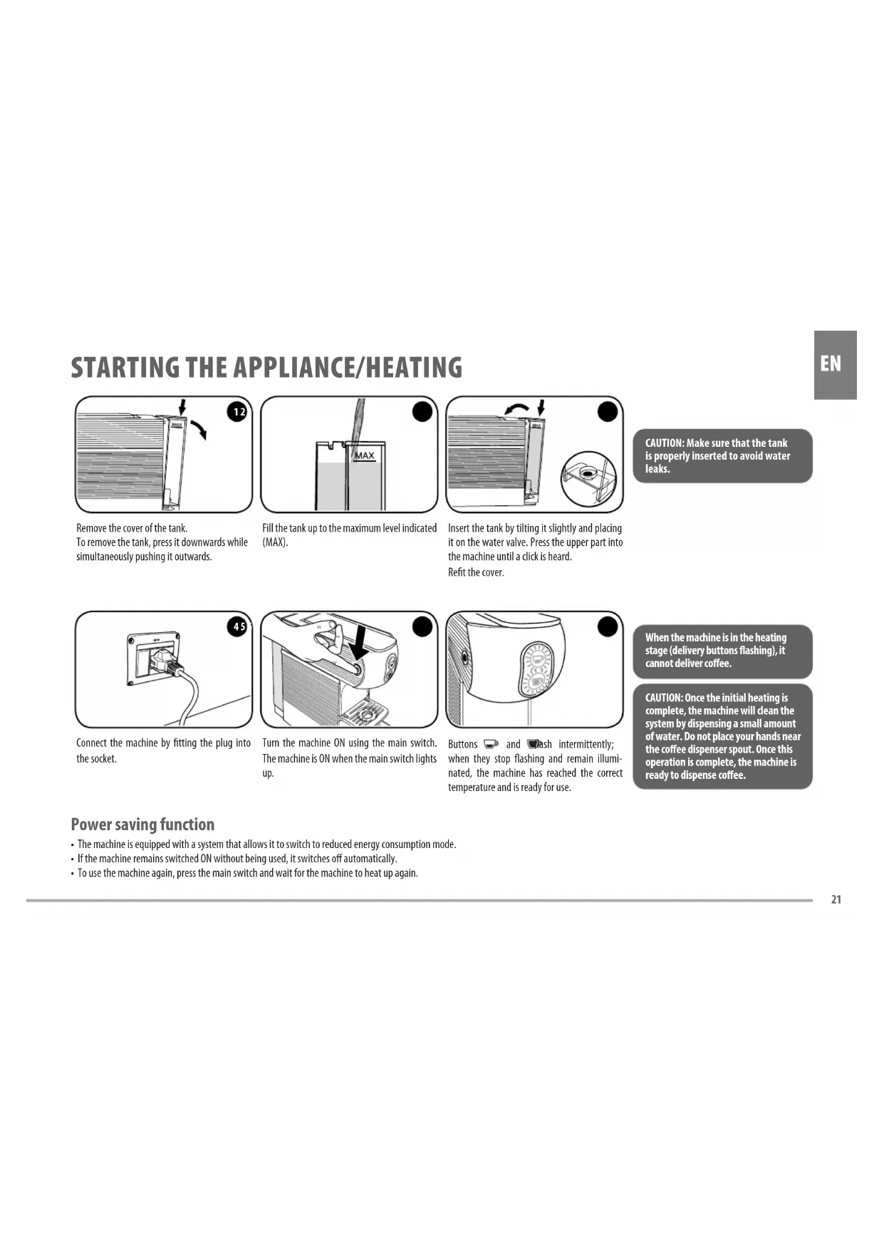 EN GENERAL MACHINE OPERATING RULES Before using this coffee machine, read the manual carefully and keep it safely for