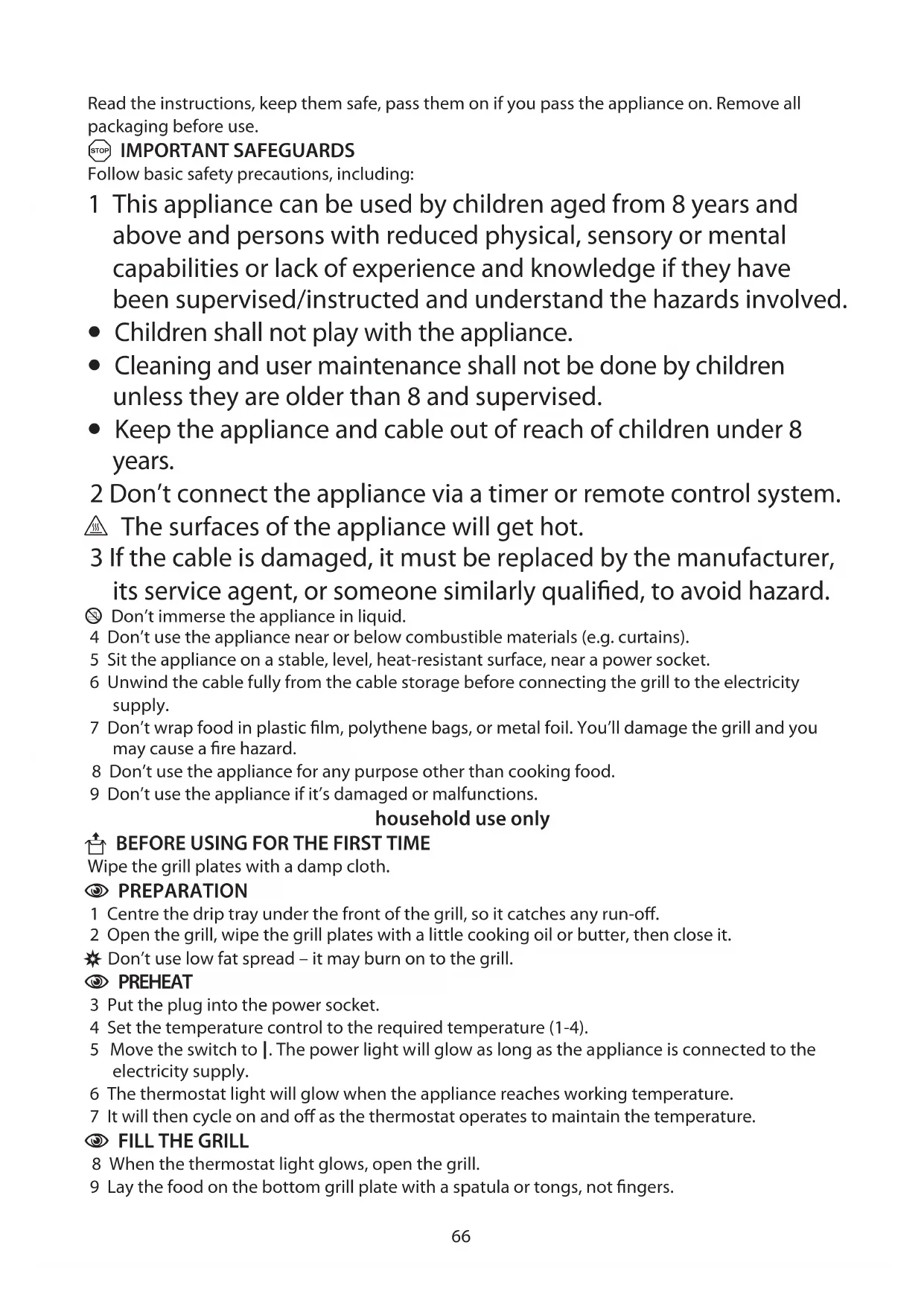 U BEFORE USING FOR THE FIRST TIME Wipe the grill plates with a damp cloth.