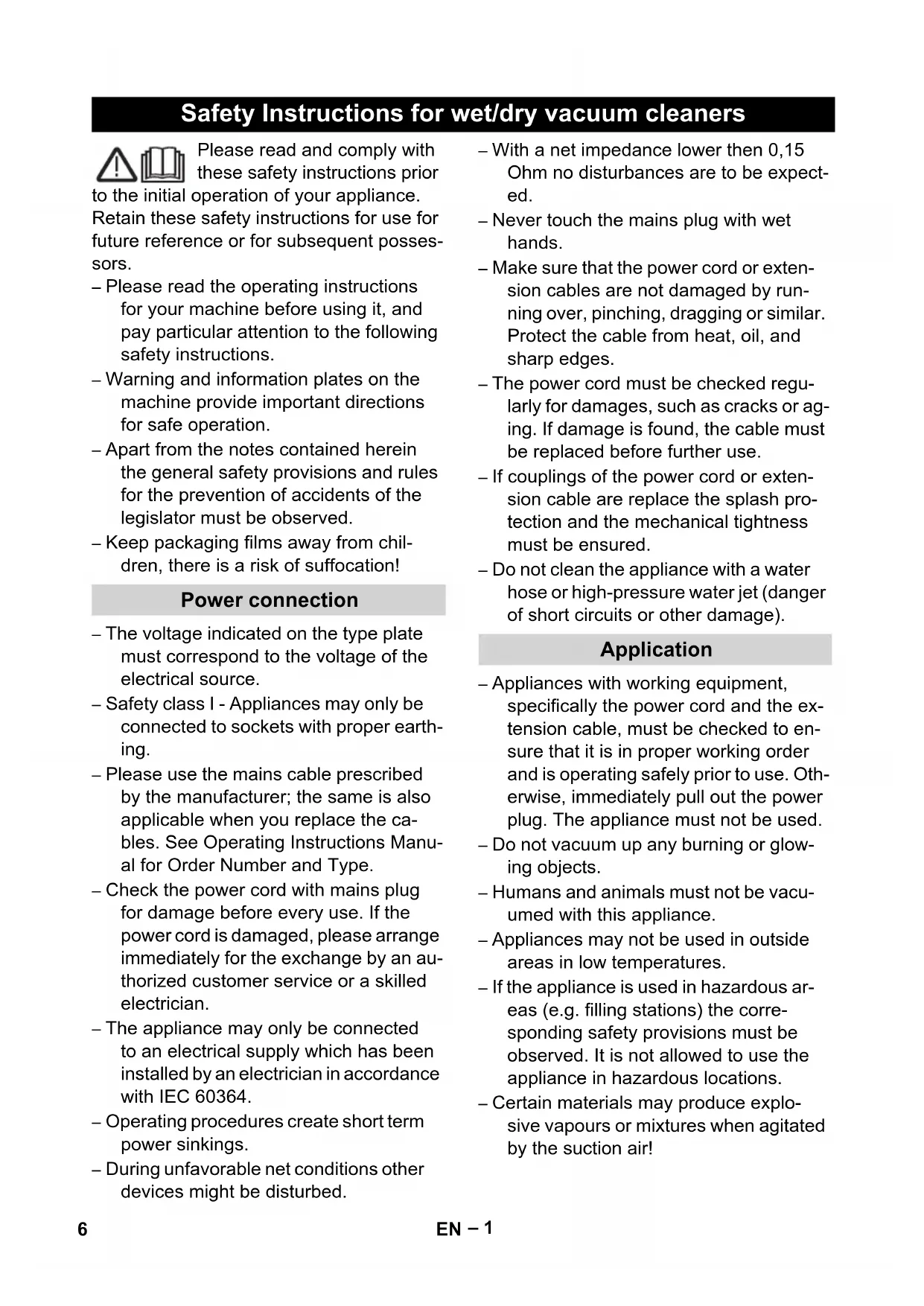 Safety Instructions for wet/dry vacuum cleaners