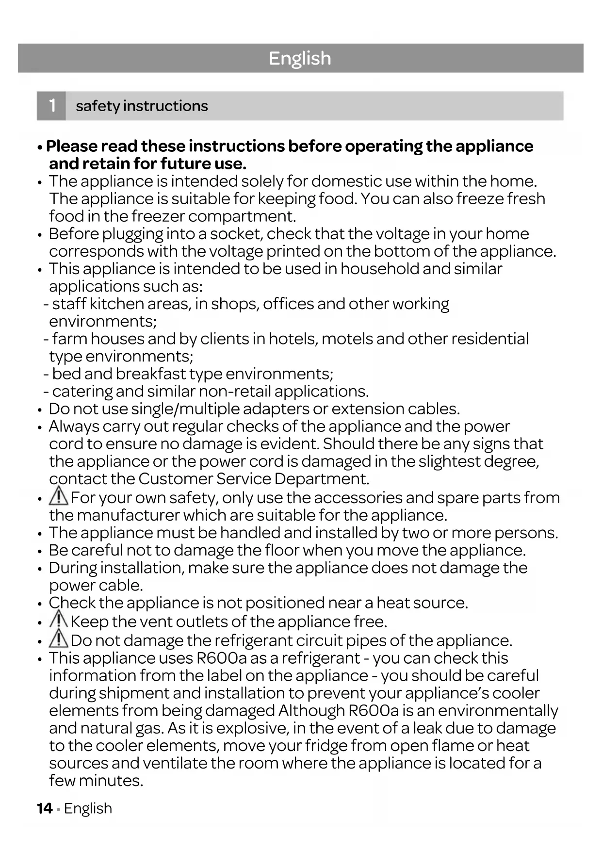 14 • English• Do not place explosive or flammable material in your aplliance for your