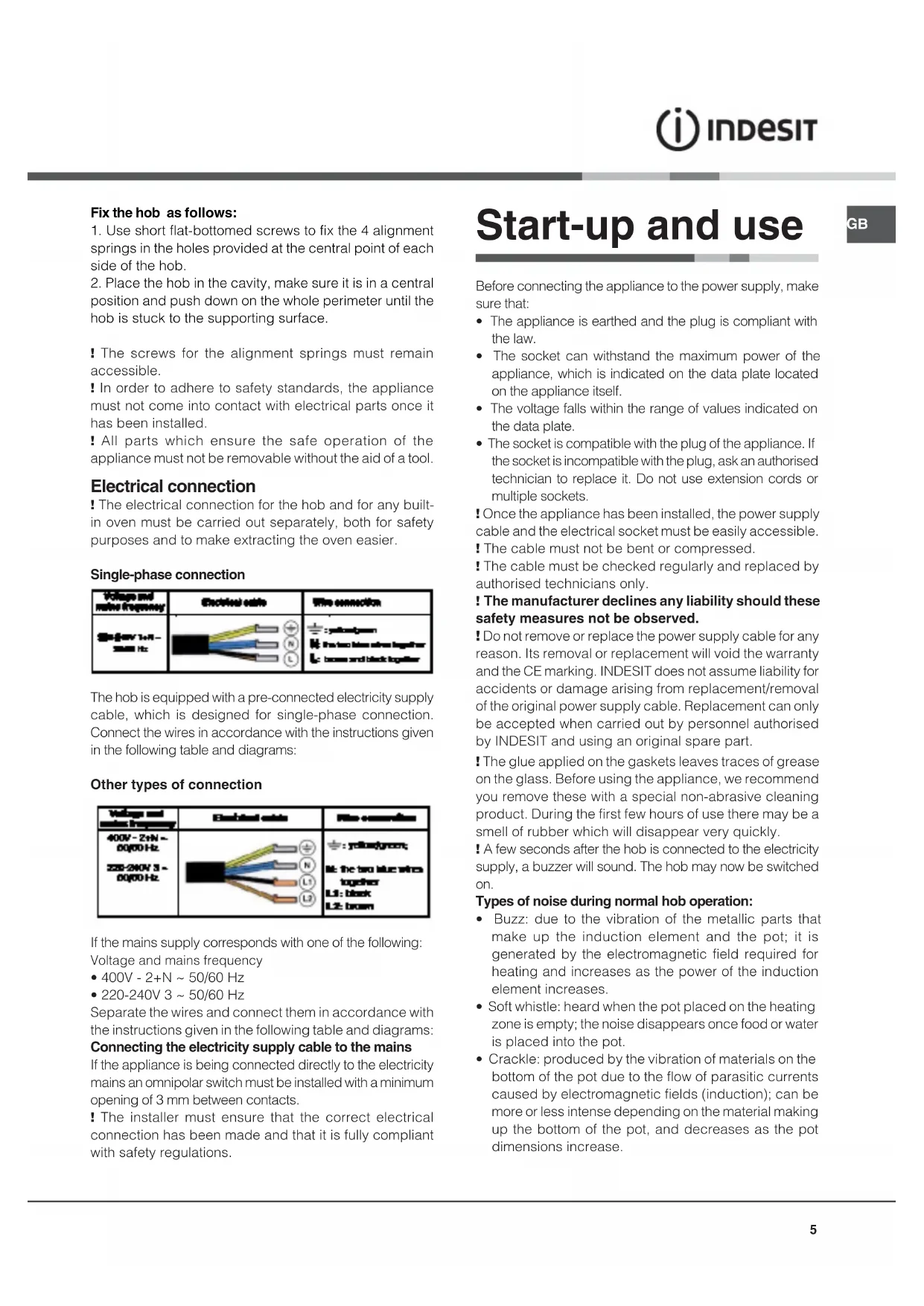 fixing could affect the features and operation of the hob.