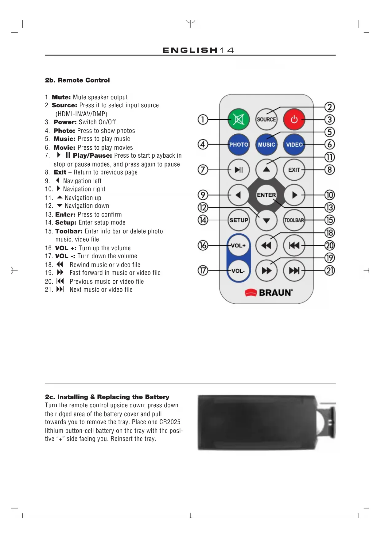 2. Source: Press it to select input source