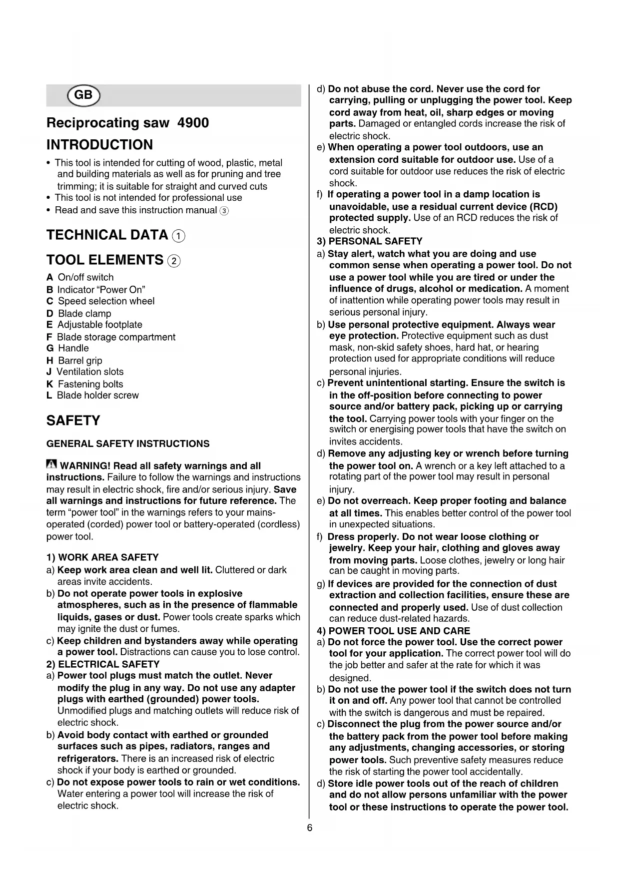 DECLARATION OF CONFORMITY Reciprocating saw 4900