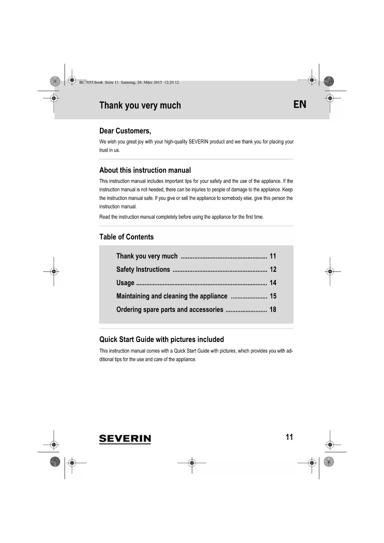 We wish you great joy with your high-quality SEVERIN product and we thank you for placing your