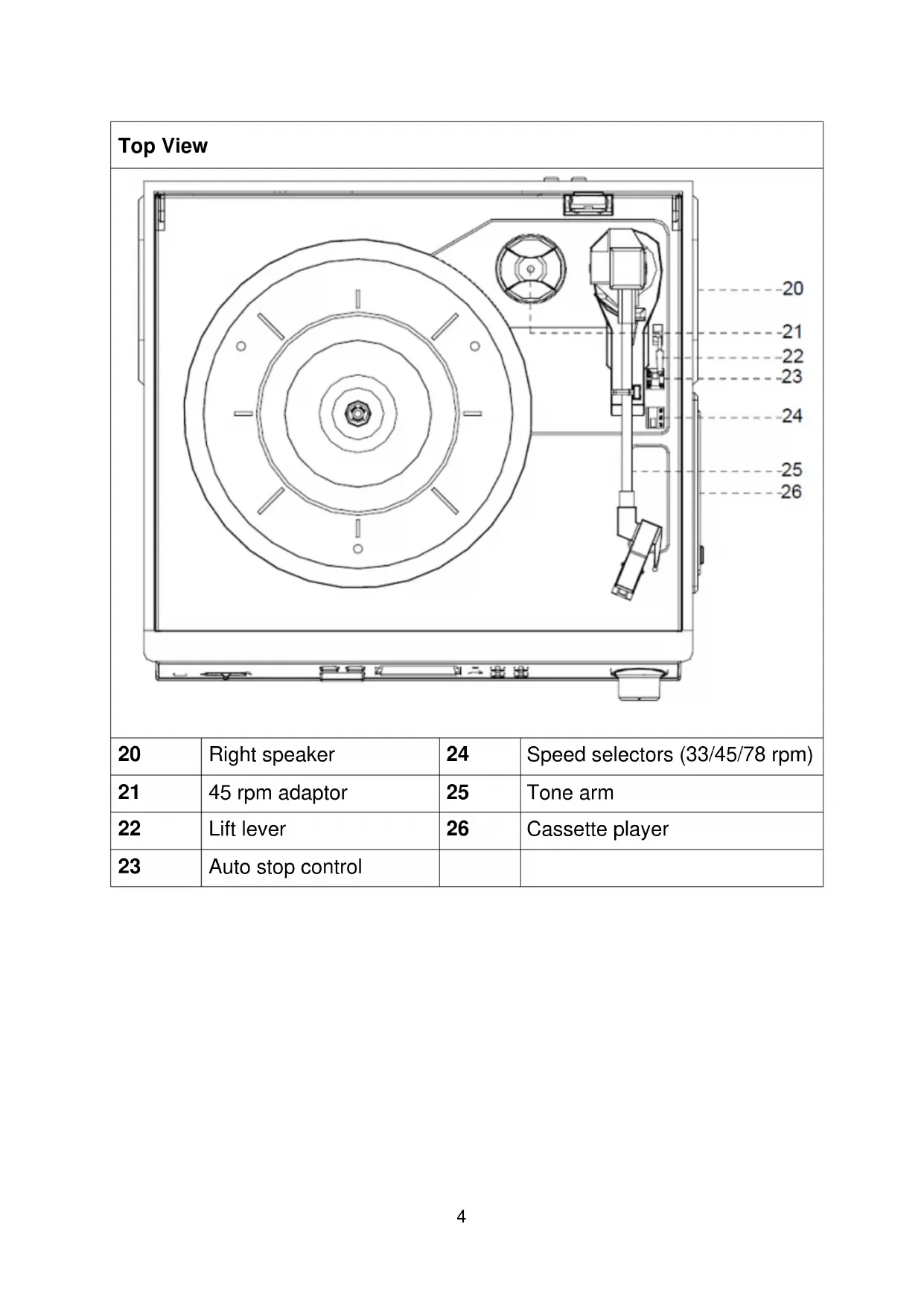 Speed selectors (33/45/78 rpm)