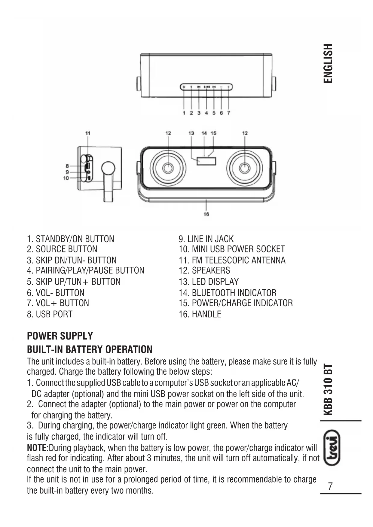 USER MANUAL KBB 310 BT Trevi