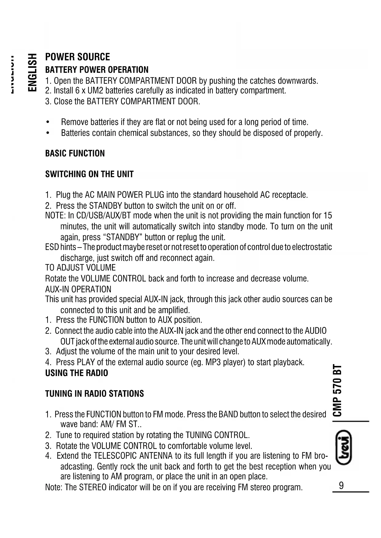 USER MANUAL CMP 570 BT Trevi
