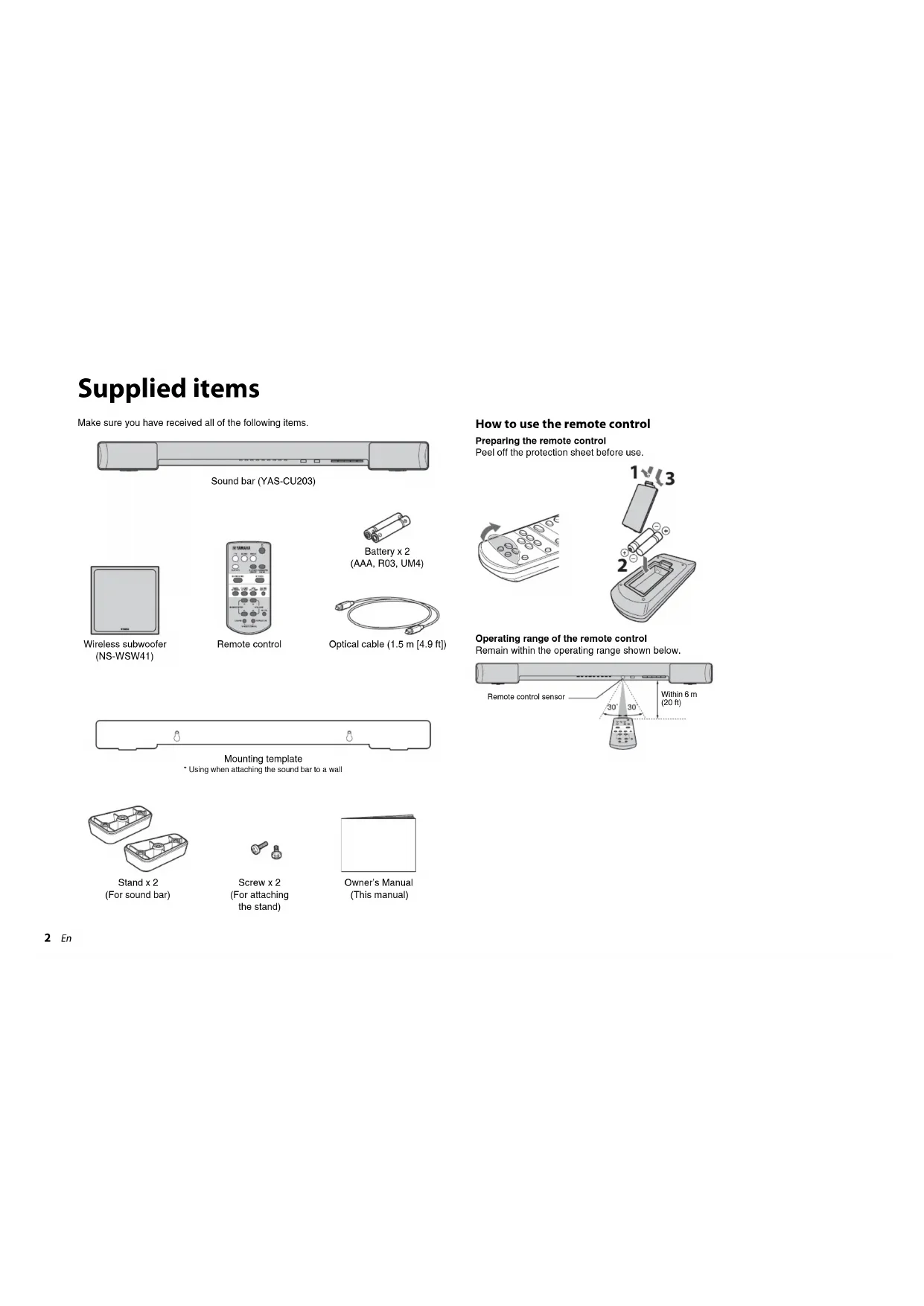 YAS203 - Barre de son YAMAHA - Free user manual and instructions