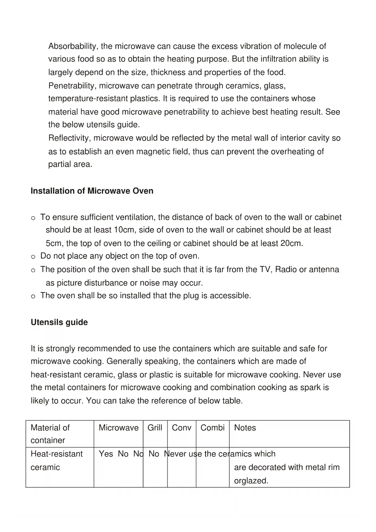 o The position of the oven shall be such that it is far from the TV, Radio or antenna