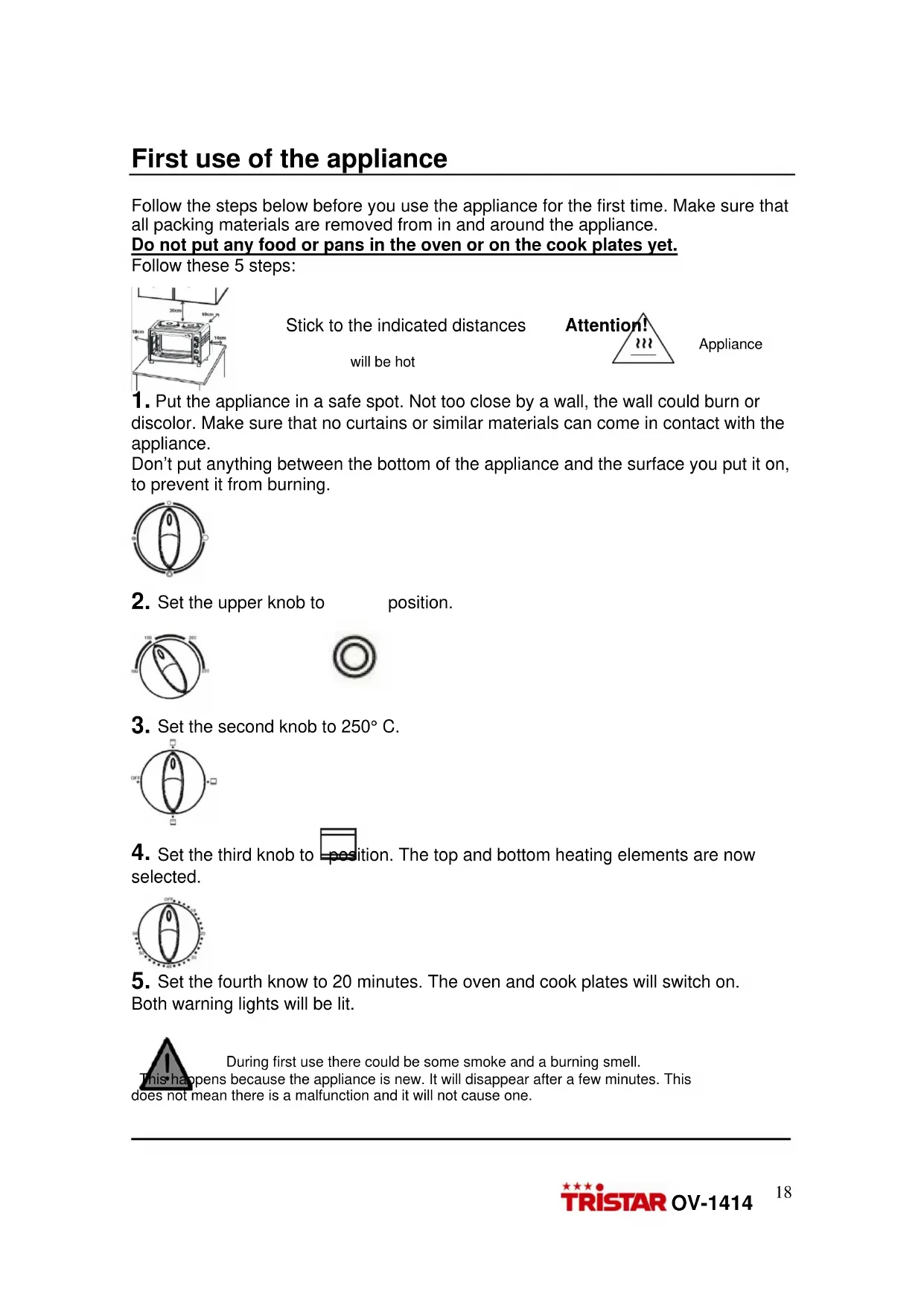 During first use there could be some smoke and a burning smell.