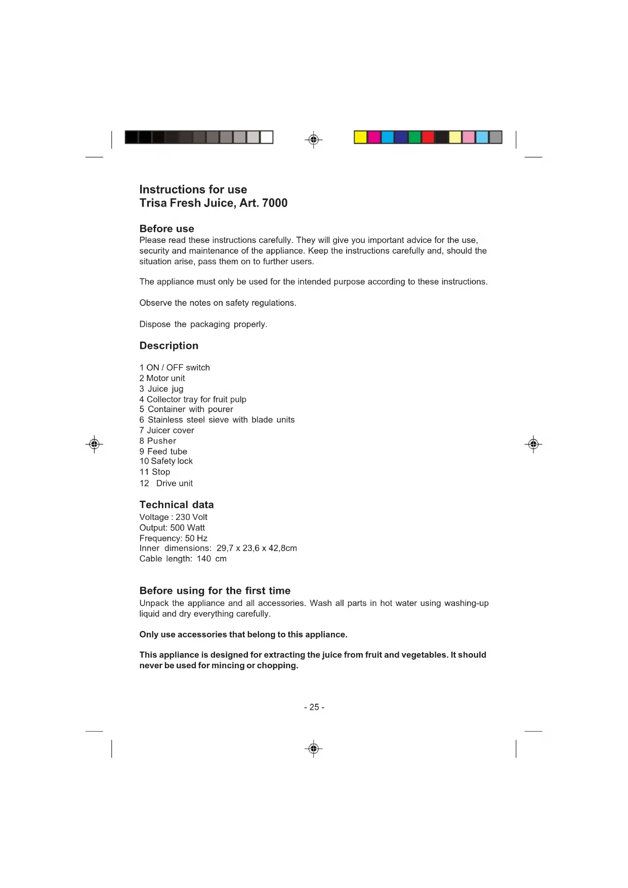 Fresh Juice 7000 - Juicer TRISA - Free user manual and instructions