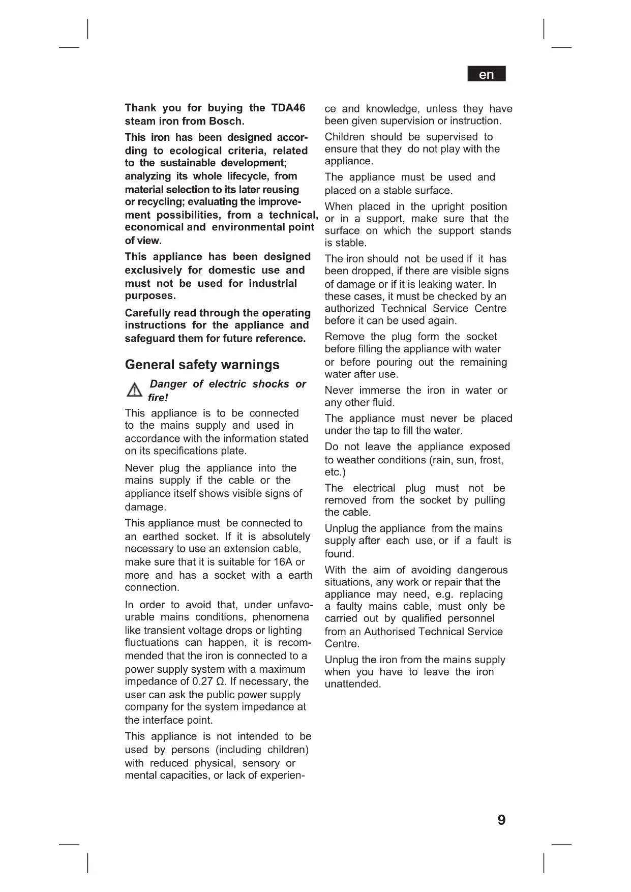 Download the instructions for your Iron in PDF format for free! Find your manual TDA4630 sensixx B3 secure Steam - BOSCH and take your electronic device back in hand. On this page are published all the documents necessary for the use of your device. TDA4630 sensixx B3 secure Steam by BOSCH.