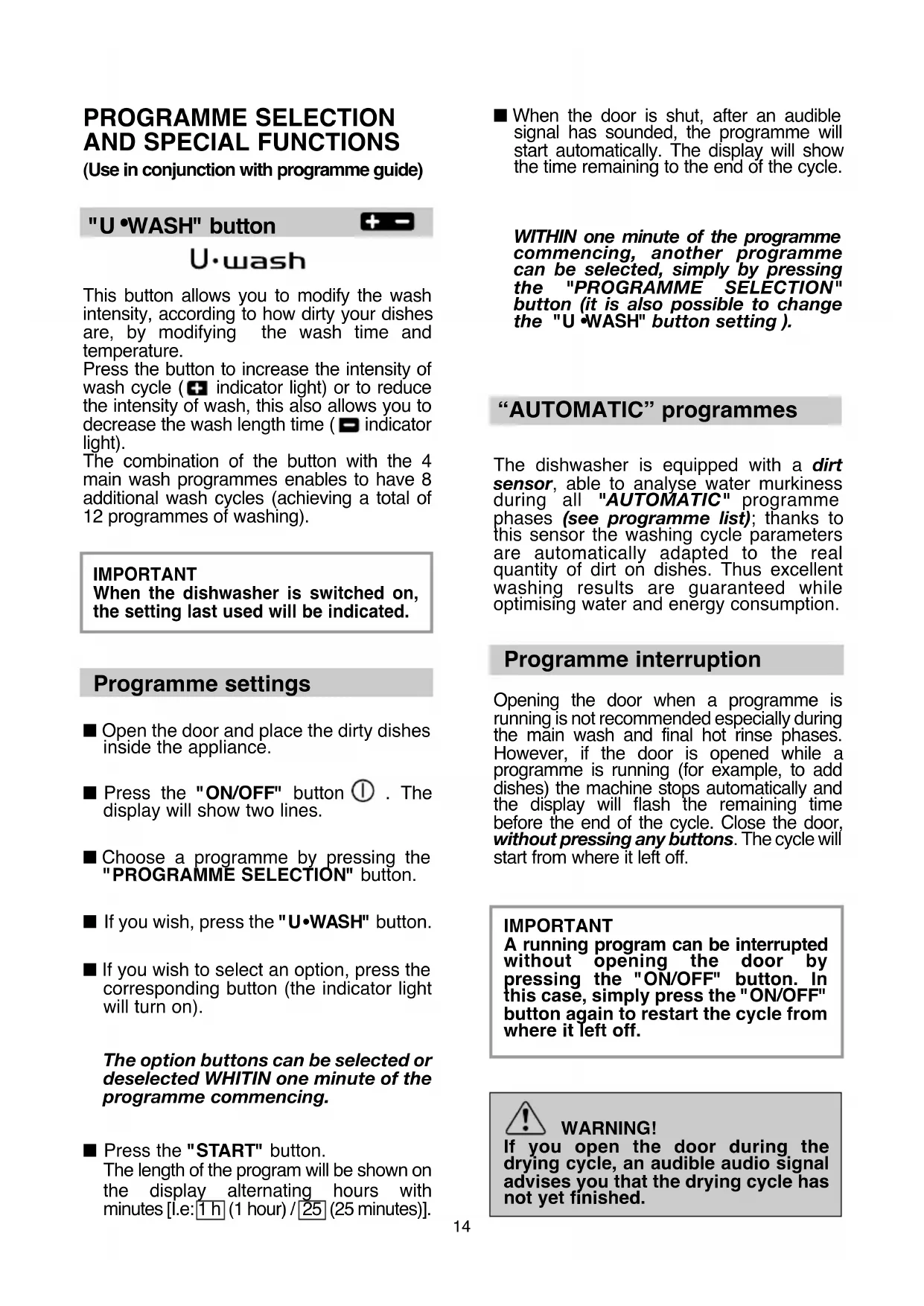 = "AUTOMATIC" programmes /( ) = "AUTOMATIC" PROGRAMMES ARE OPTIMISED THANKS TO THE DIRT SENSOR THAT ADAPTSWASHING PARAMETERS TO DISH DIRT LEVELS. ••
