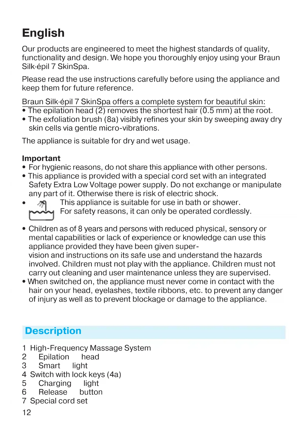 Download the instructions for your Epilator in PDF format for free! Find your manual 7931SP - BRAUN and take your electronic device back in hand. On this page are published all the documents necessary for the use of your device. 7931SP by BRAUN.