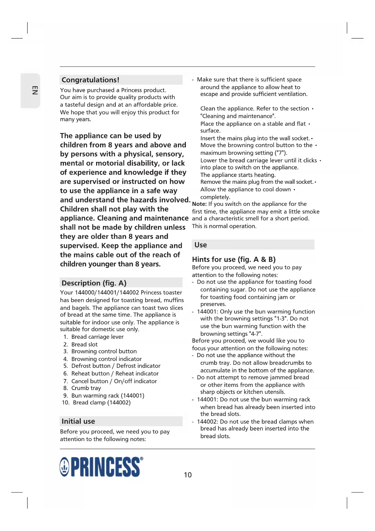 Download the instructions for your Grille-pain in PDF format for free! Find your manual Compact4All Toaster 144002 - PRINCESS and take your electronic device back in hand. On this page are published all the documents necessary for the use of your device. Compact4All Toaster 144002 by PRINCESS.
