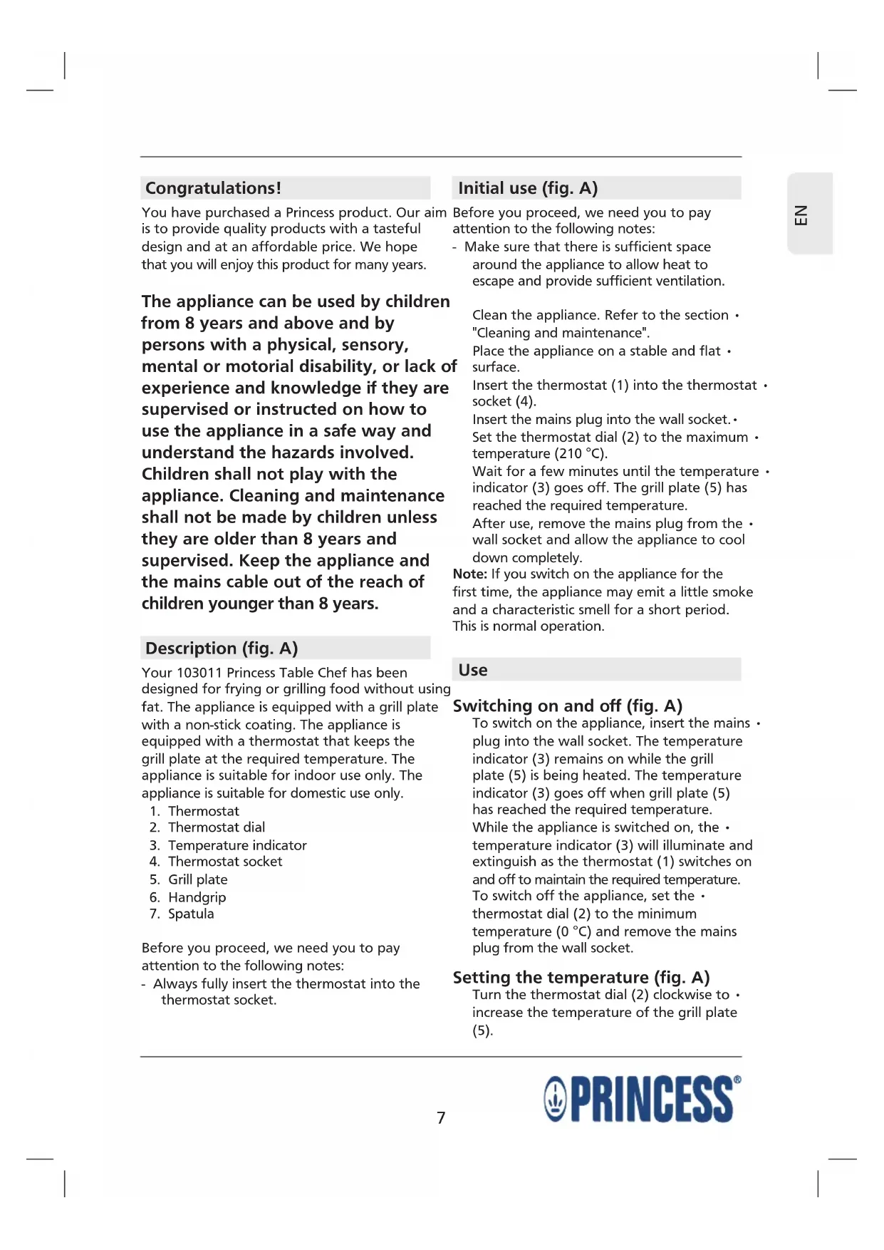 Setting the temperature (fig. A)