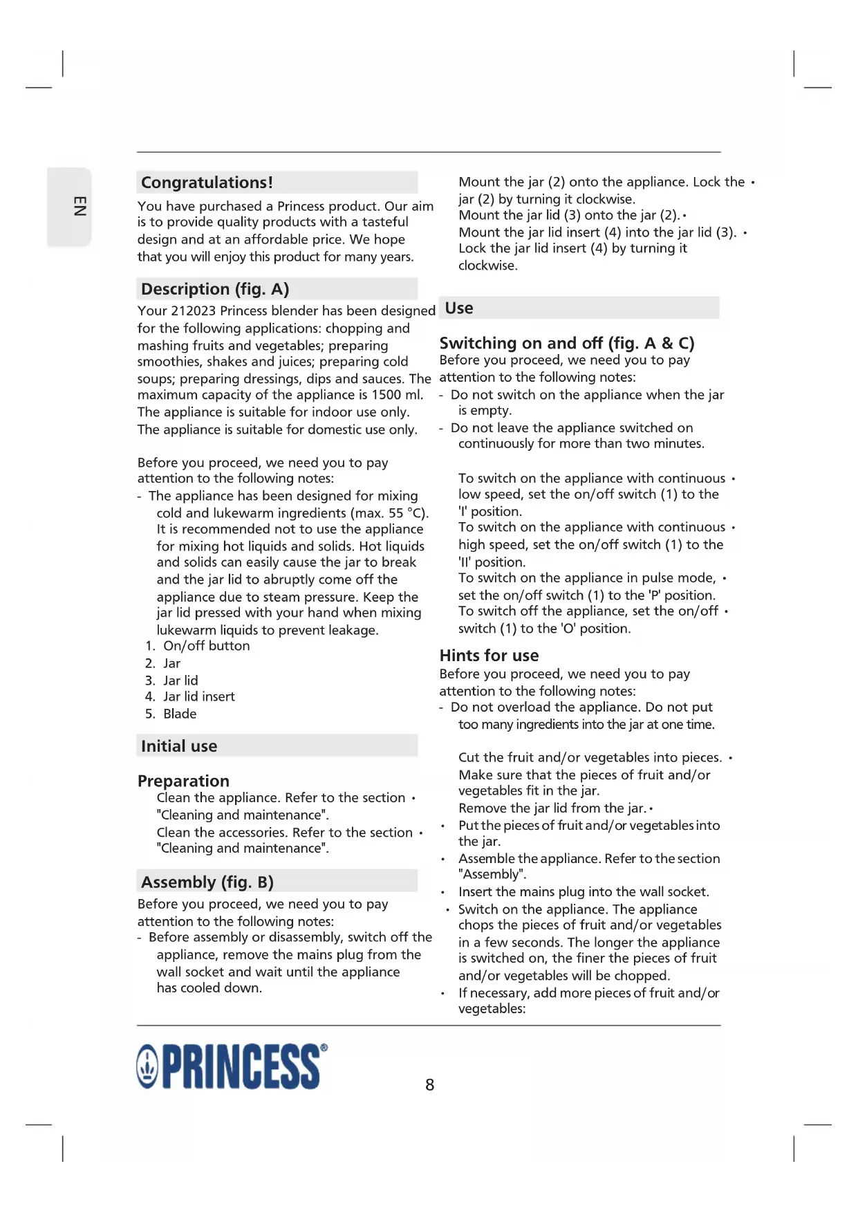 Power Blender - Blender PRINCESS - Free user manual and instructions