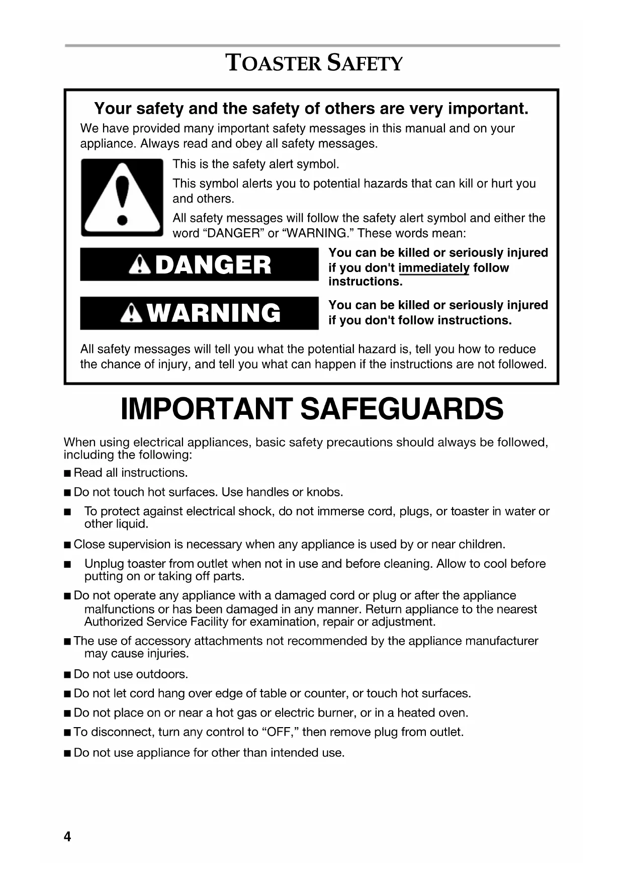 - Unplug toaster from outlet when not in use and before cleaning. Allow to cool before putting on or taking off parts.