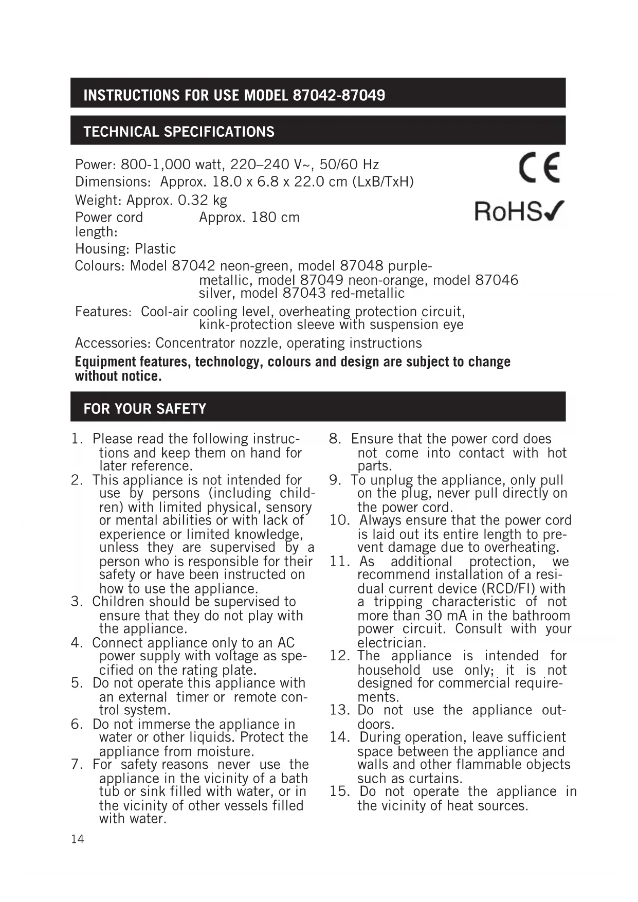 NOTICE D´UTILISATION MODÈLE 87042-87049