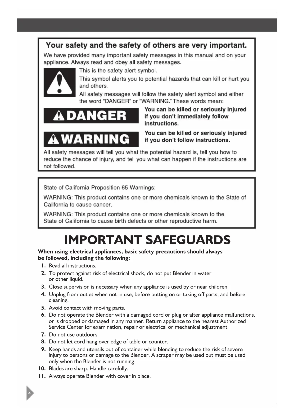BLENDER SAFETYBLENDER SAFETY IMPORTANT SAFEGUARDS When using electrical appliances, basic safety precautions should always