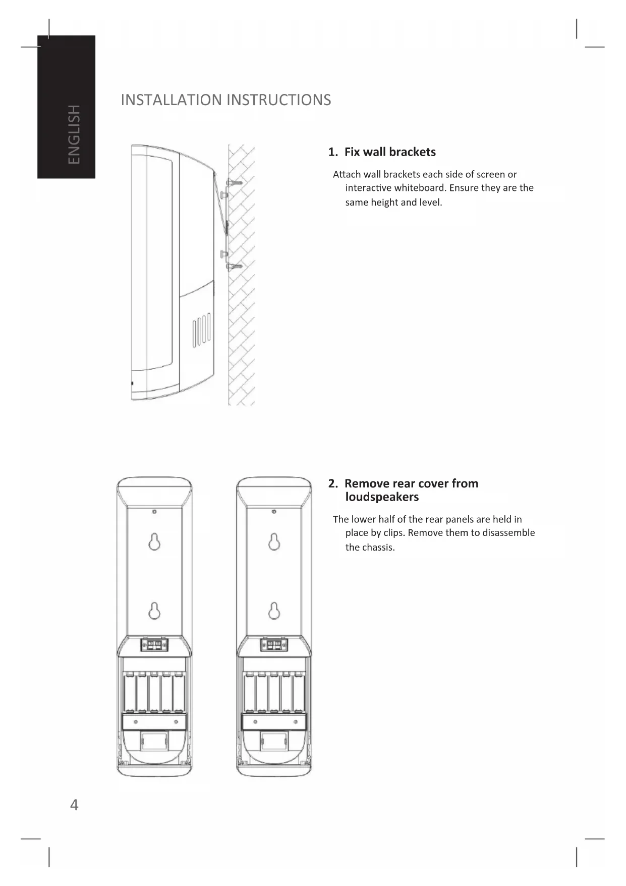 Re-aach the rear covers, and hang in place. Cable exit covers are included which allow