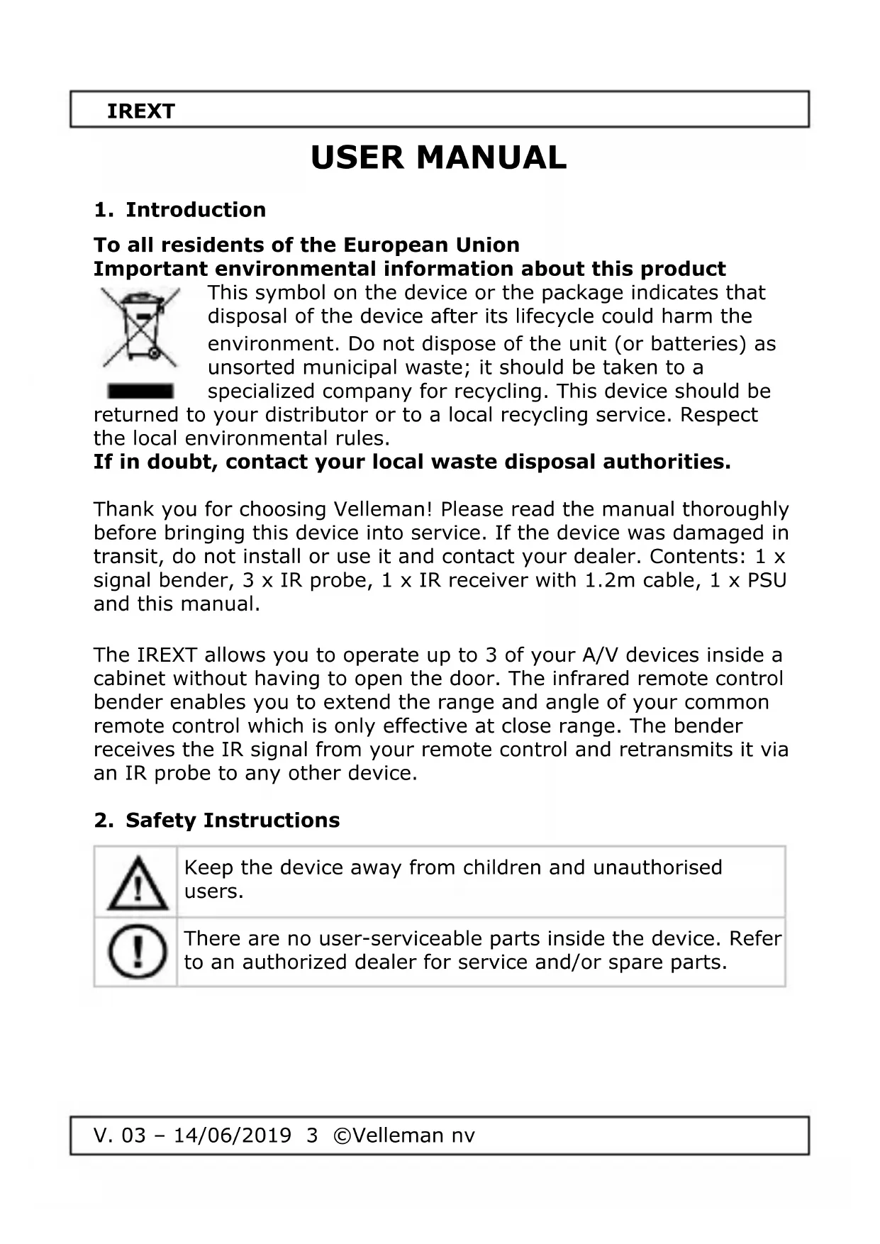 Find the device manual for free IREXT VELLEMAN in PDF.
