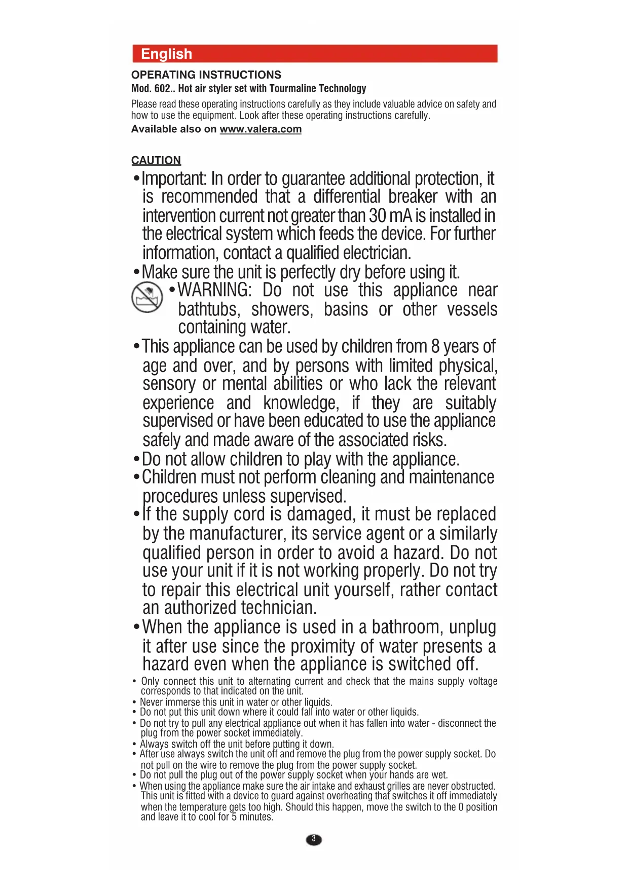 Find the device manual for free Pro Style 400 Tourmaline 602.01B VALERA in PDF.