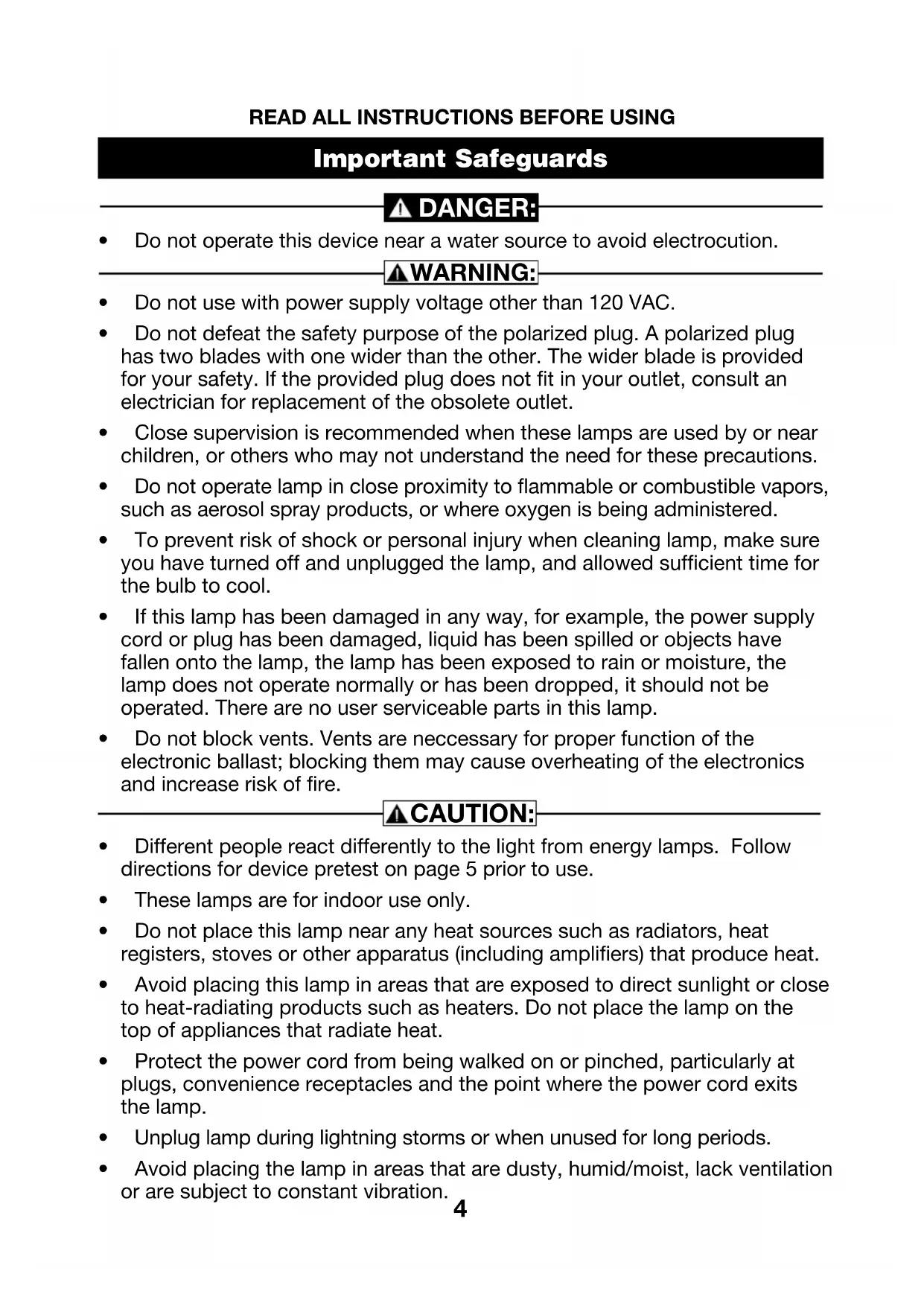 - Differentpeoplereactdifferentlytothelightfromenergylamps.Follow directions for device pretest on page 5 prior to use.
