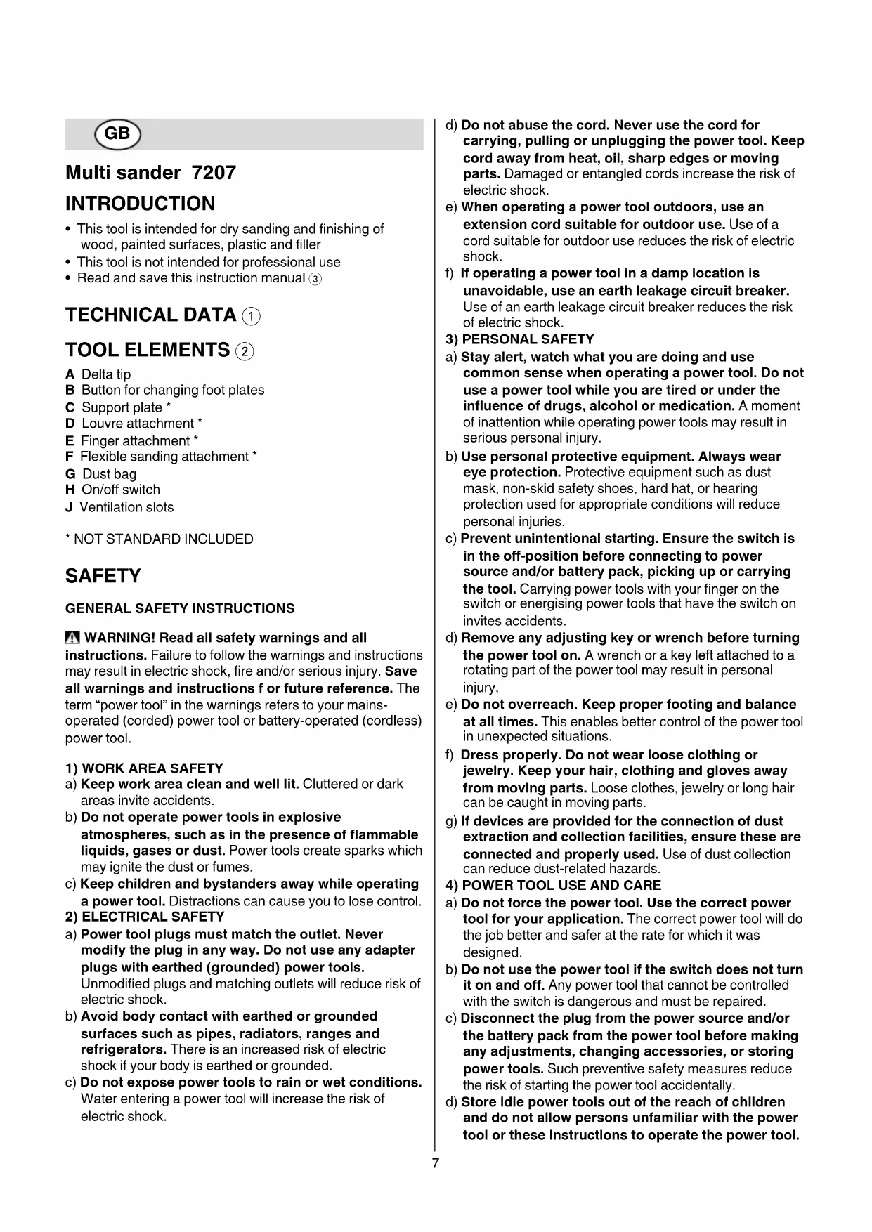 • This tool is intended for dry sanding and nishing of