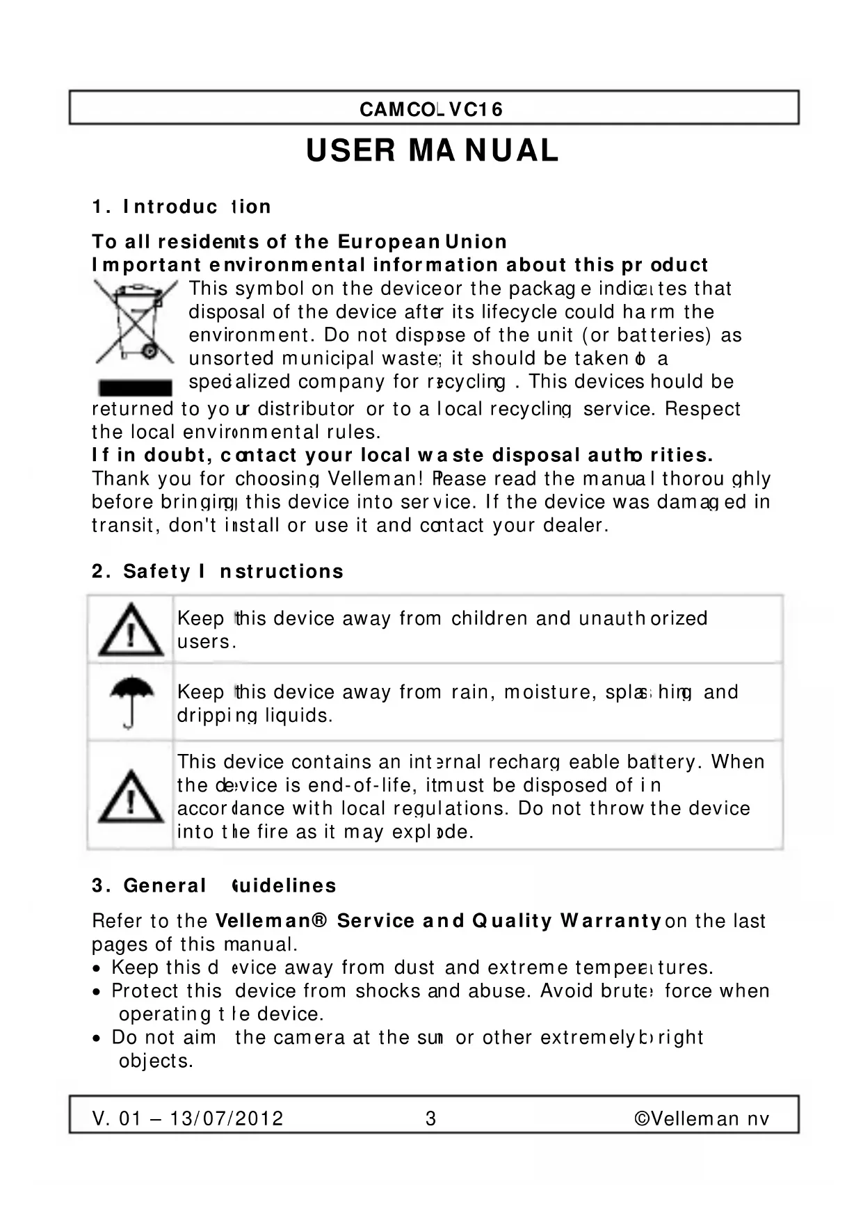 USER MANUAL CAMCOLVC16 VELLEMAN