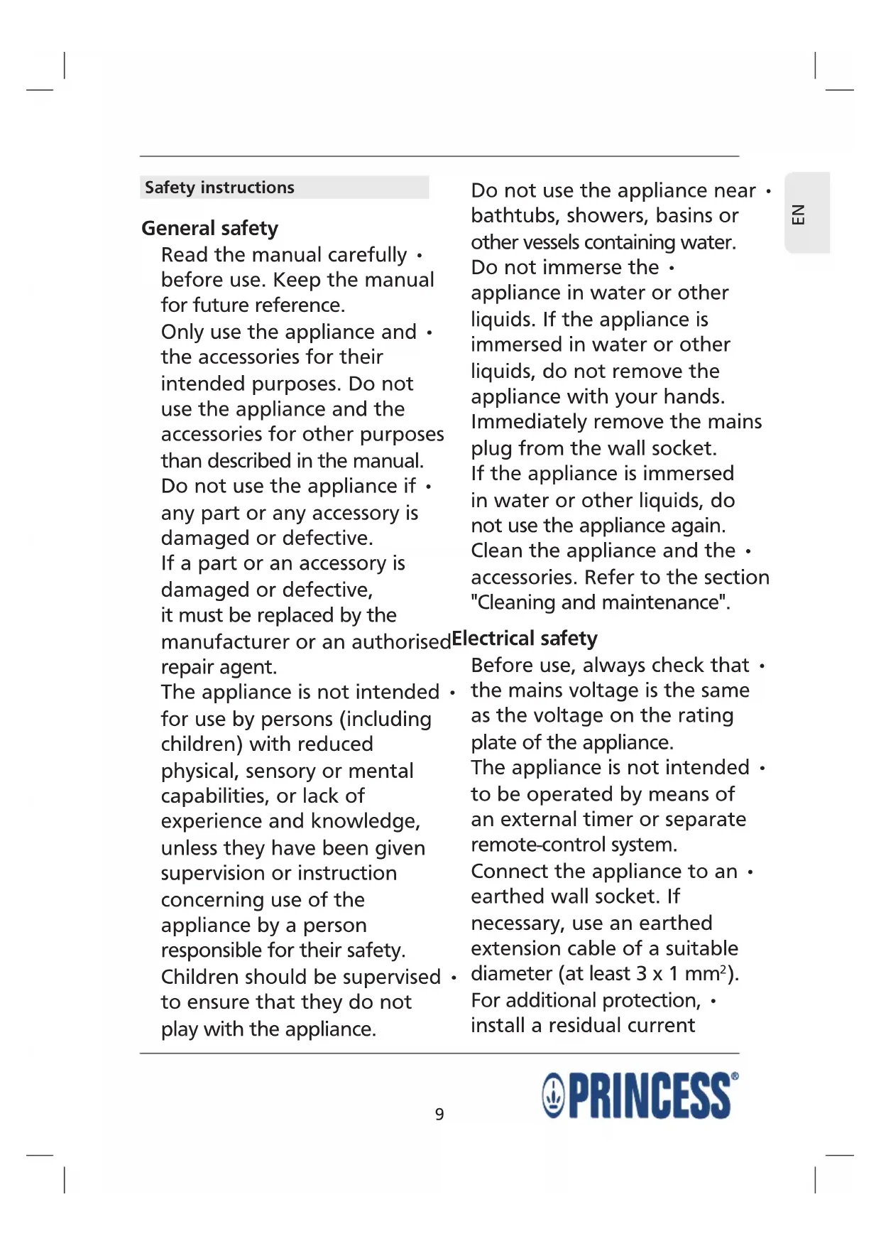 Only use the appliance and •