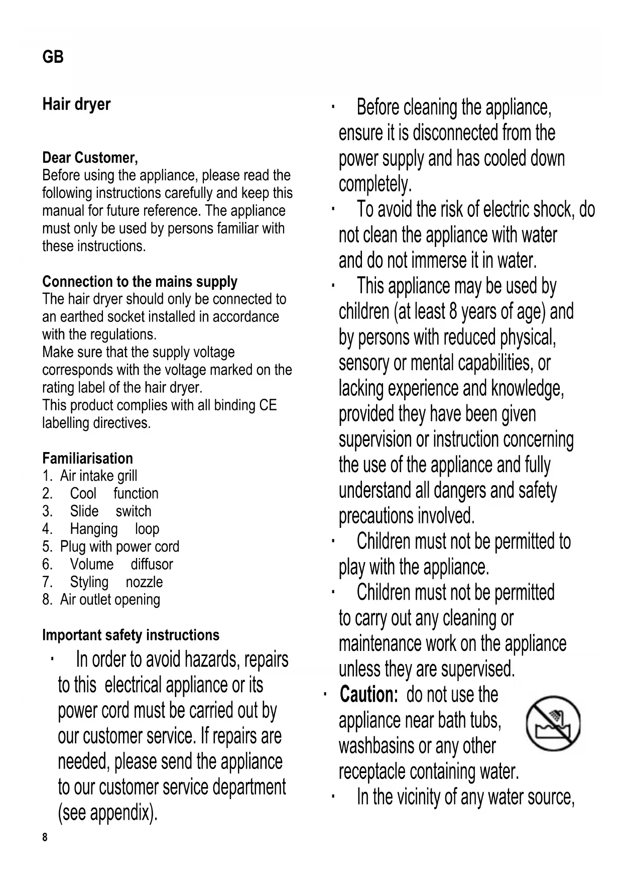 ∙ Before cleaning the hair dryer, remove