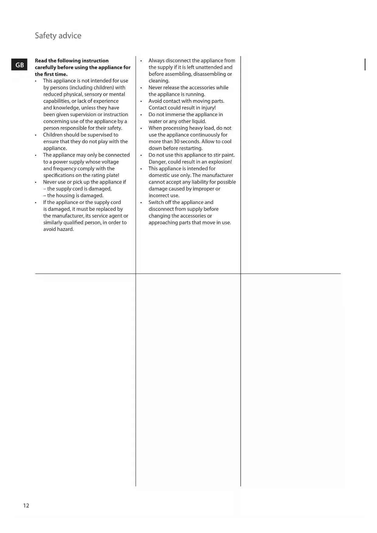 The handmixer is not working Make sure the appliance is plugged in and that all accessories are correctly assembled.
