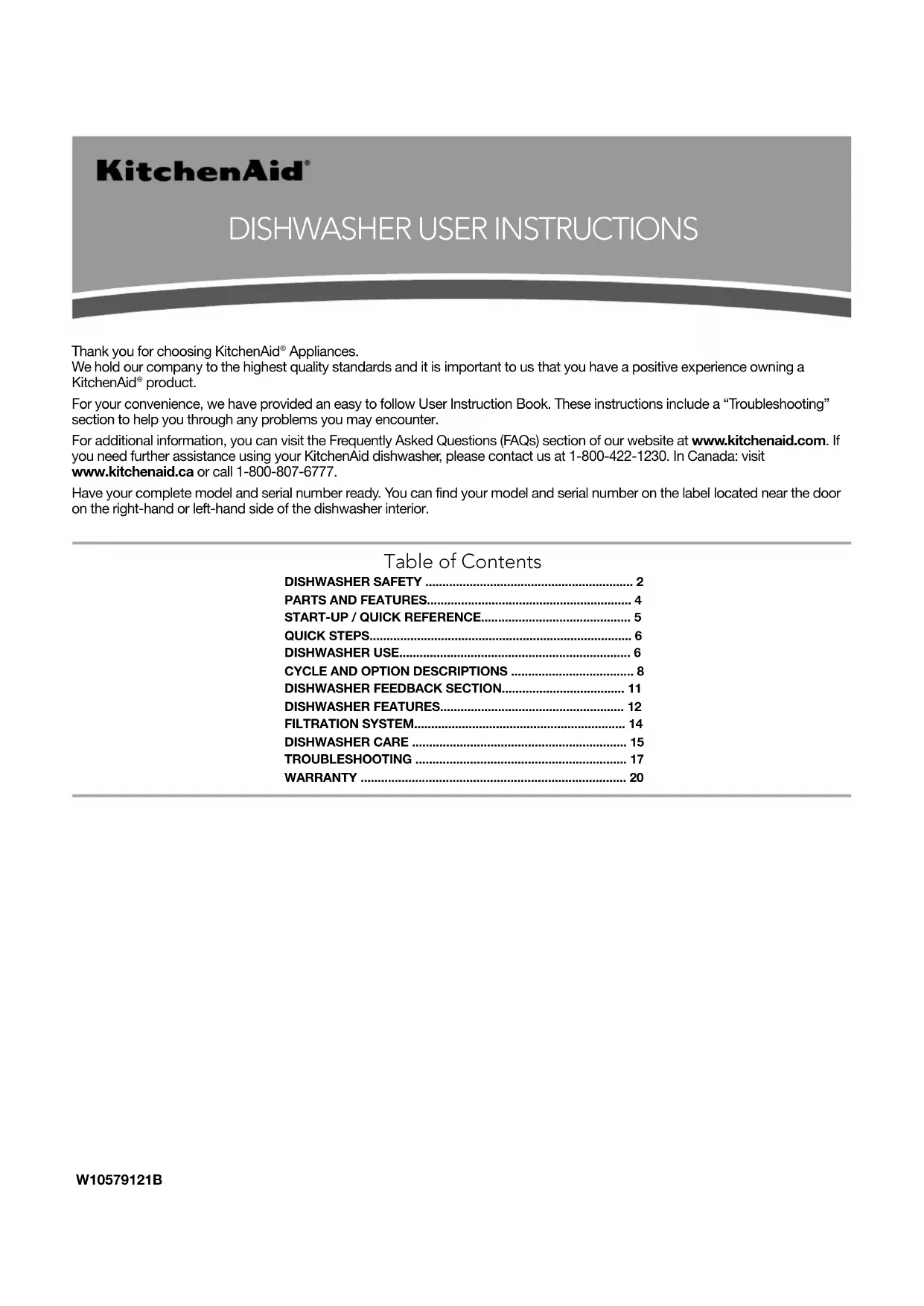you need further assistance using your KitchenAid dishwasher, please contact us at 1-800-422-1230. In Canada: visit