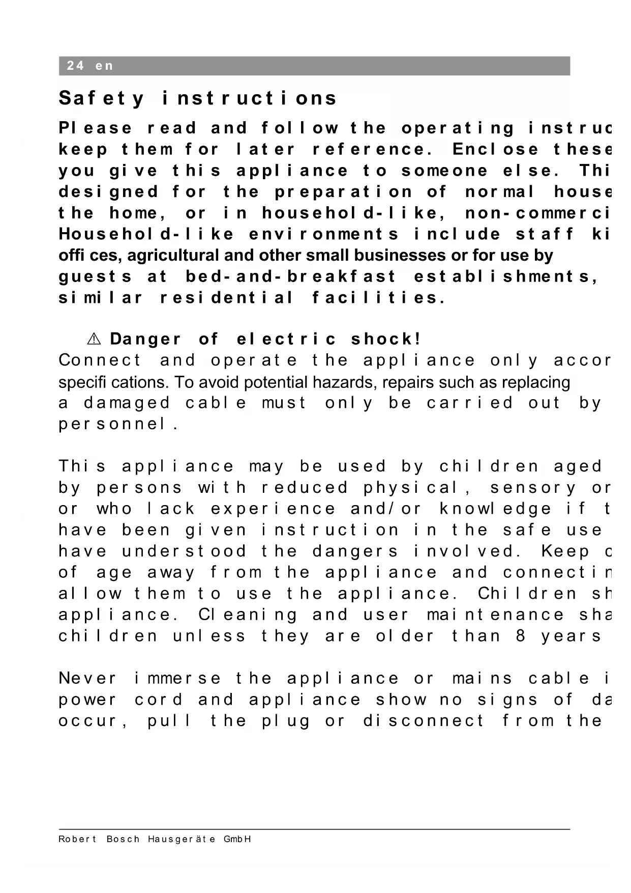 Robert Bosch Hausgeräte GmbH Safety instructions