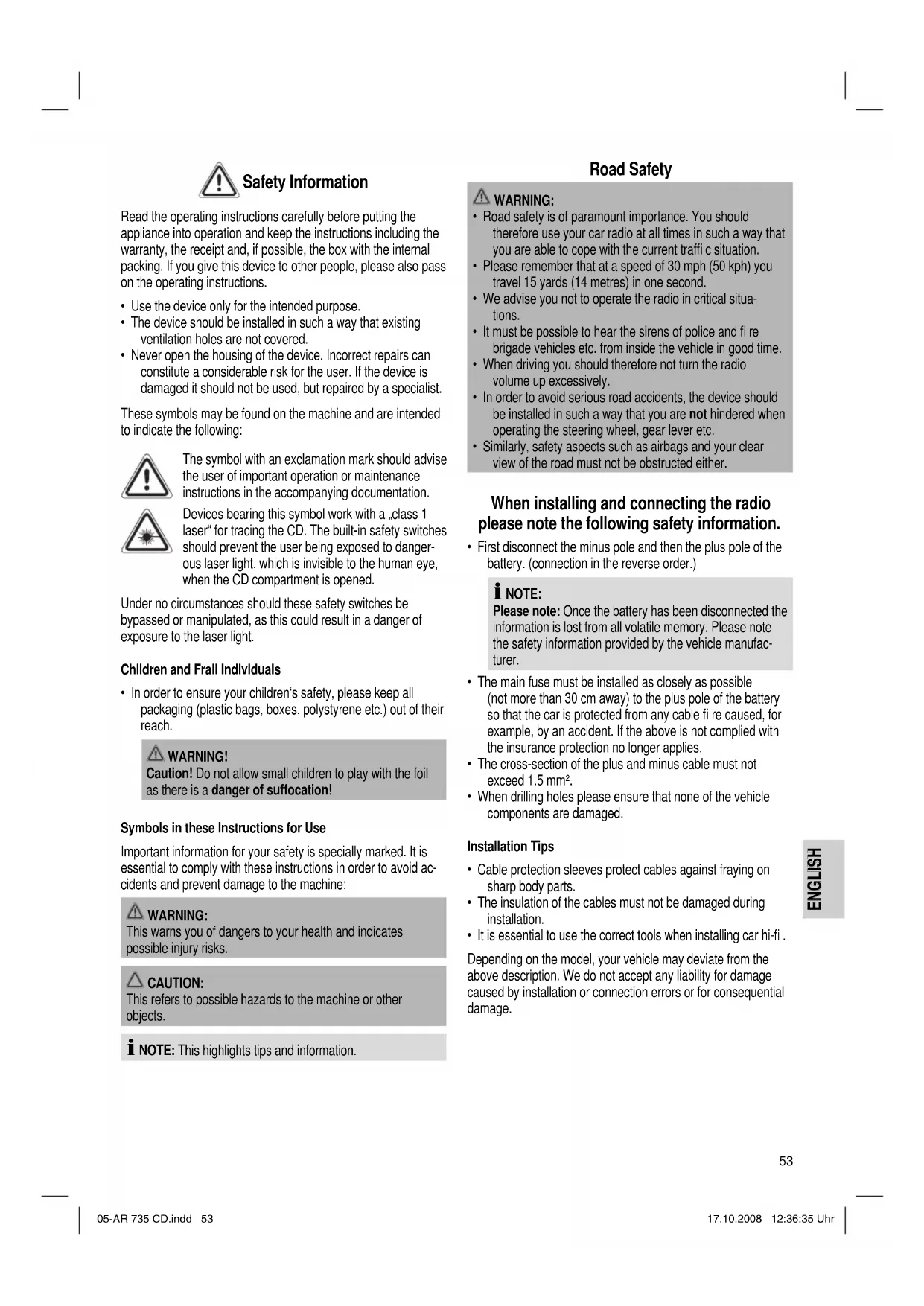 • It is essential to use the correct tools when installing car hi-fi .