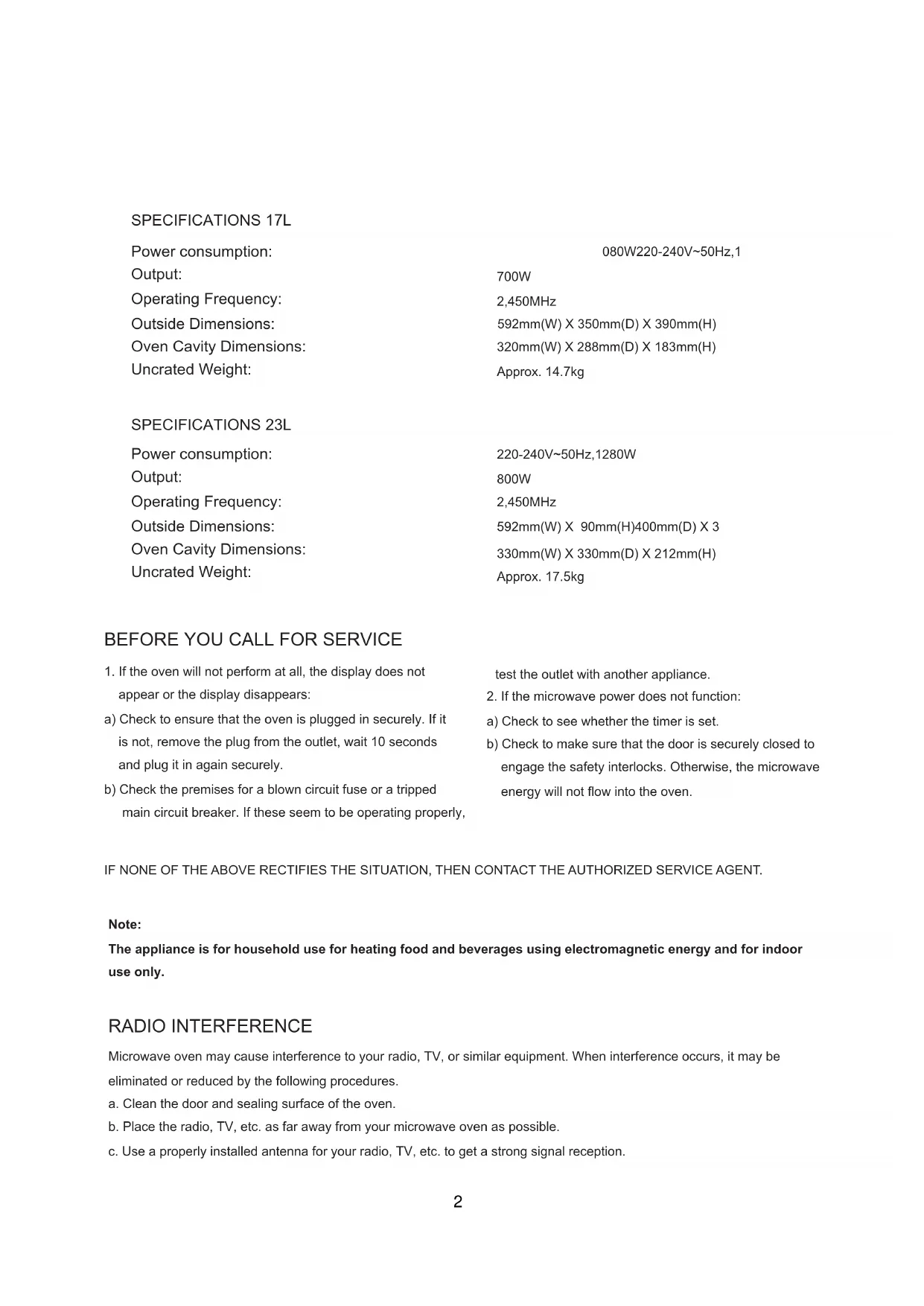 The appliance is for household use for heating food and beverages using electromagnetic energy and for indoor