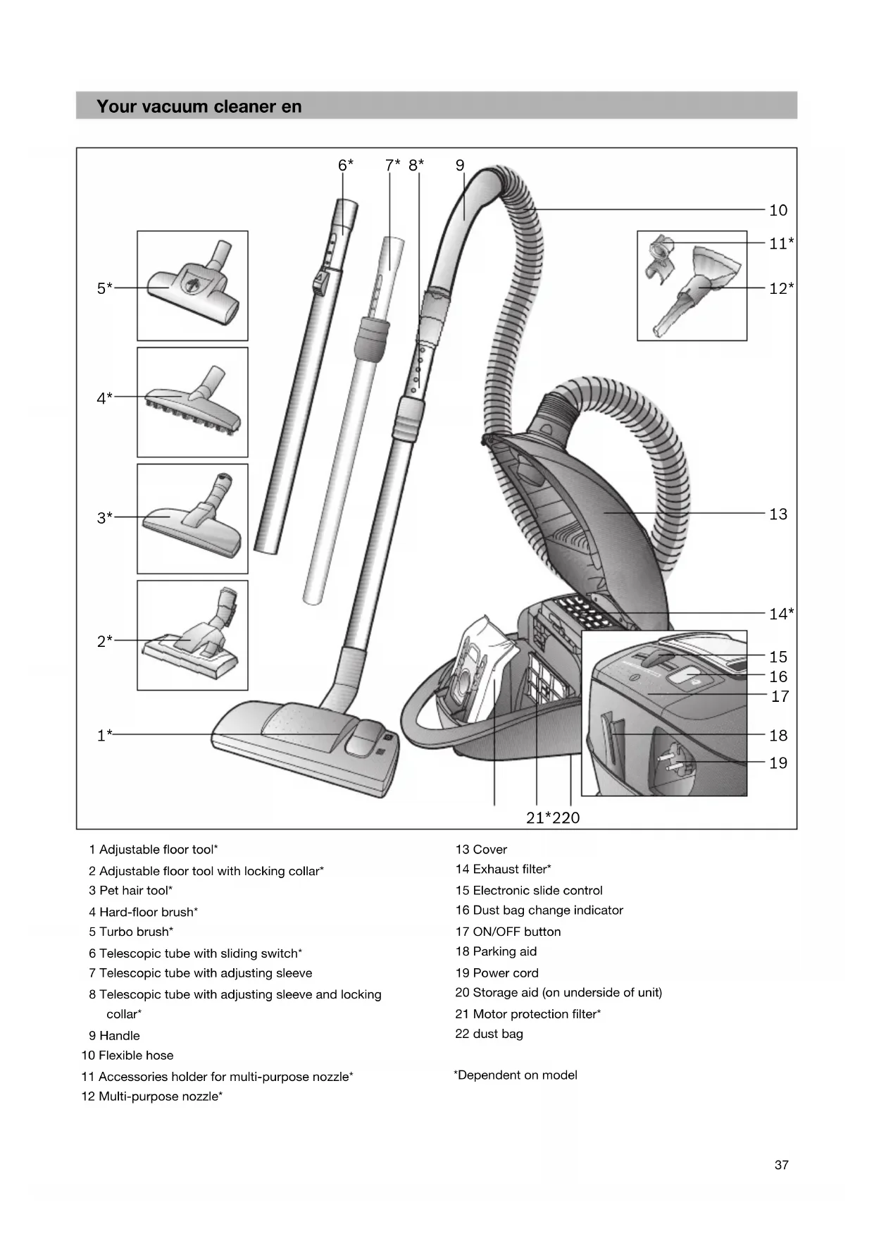 The vacuum cleaner and plastic accessories can be cleaned