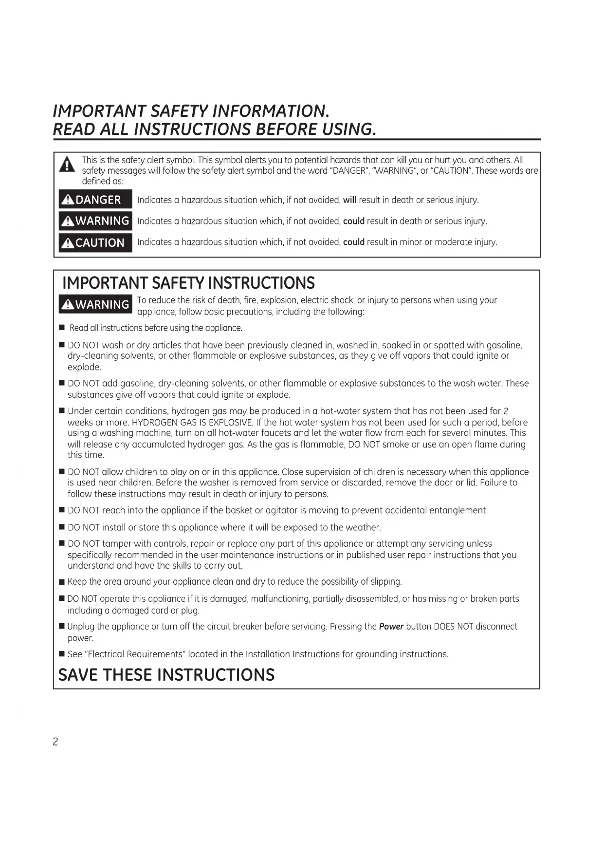 Washers 49-90517-3 08-14 GE Safety Information 2, 3