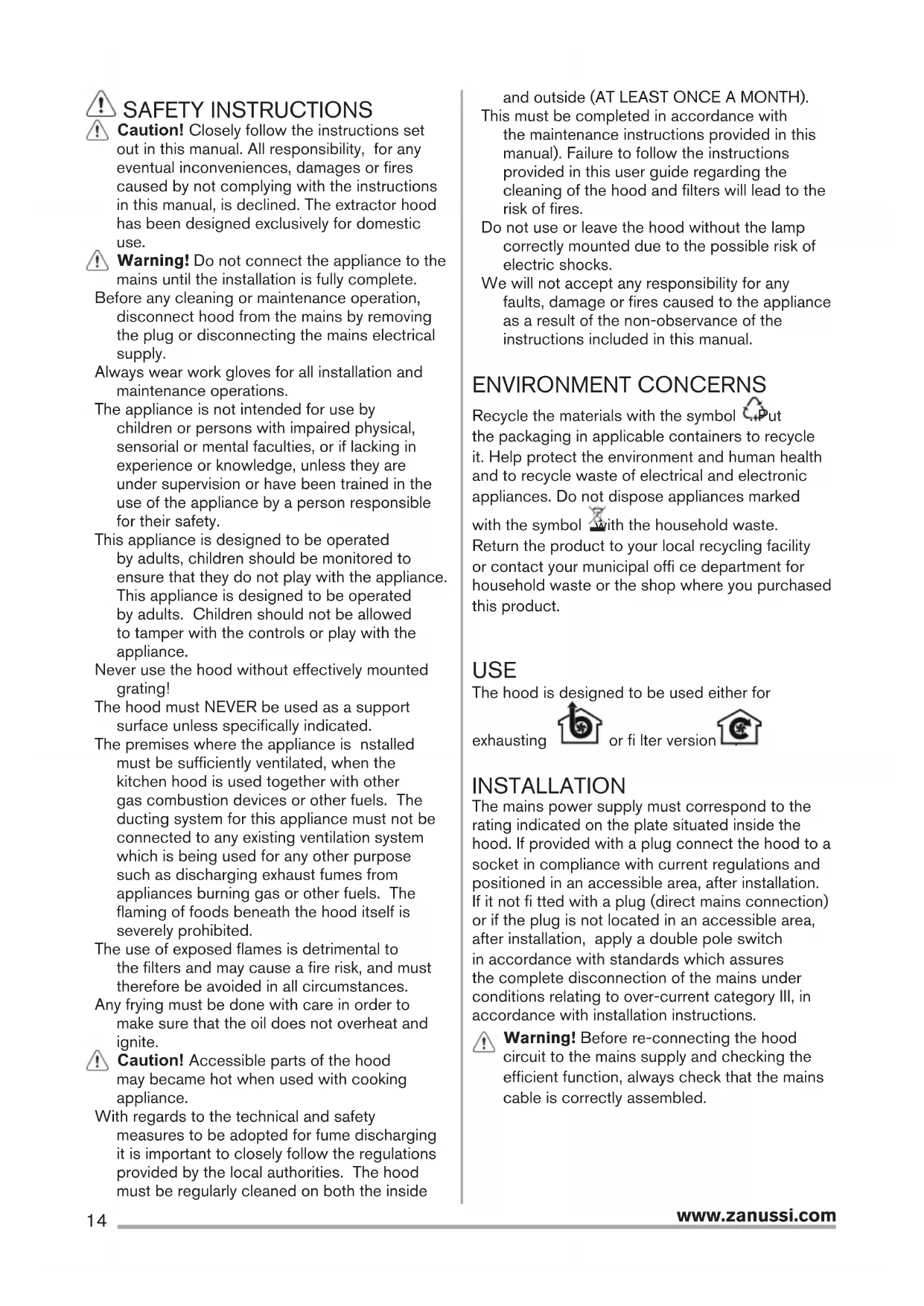 in this manual, is declined. The extractor hood