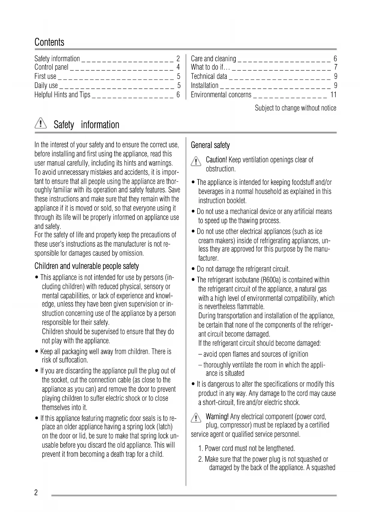 • The refrigerant isobutane (R600a) is contained within