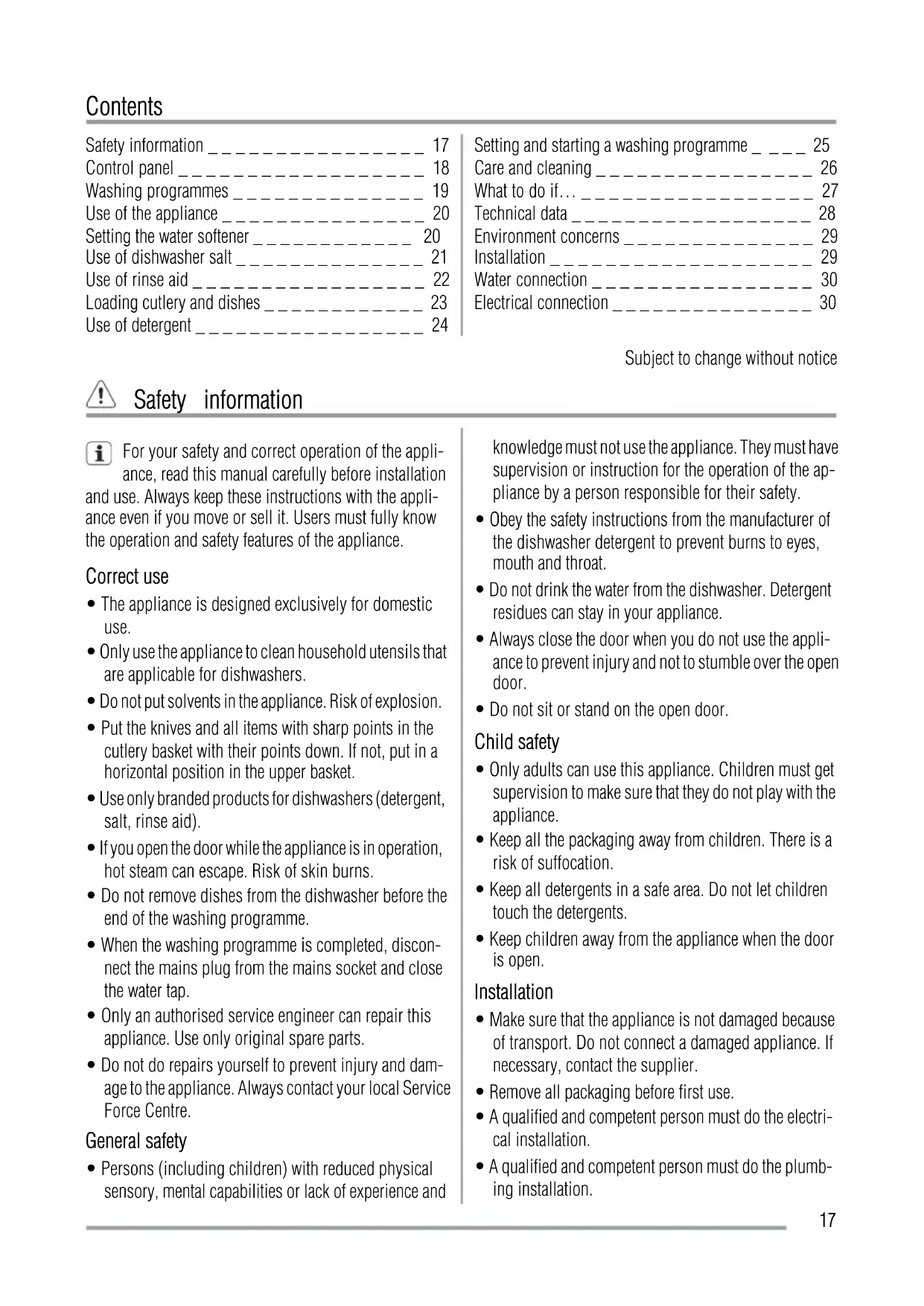Use of dishwasher salt _ _ _ _ _ _ _ _ _ _ _ _ _ _ 21