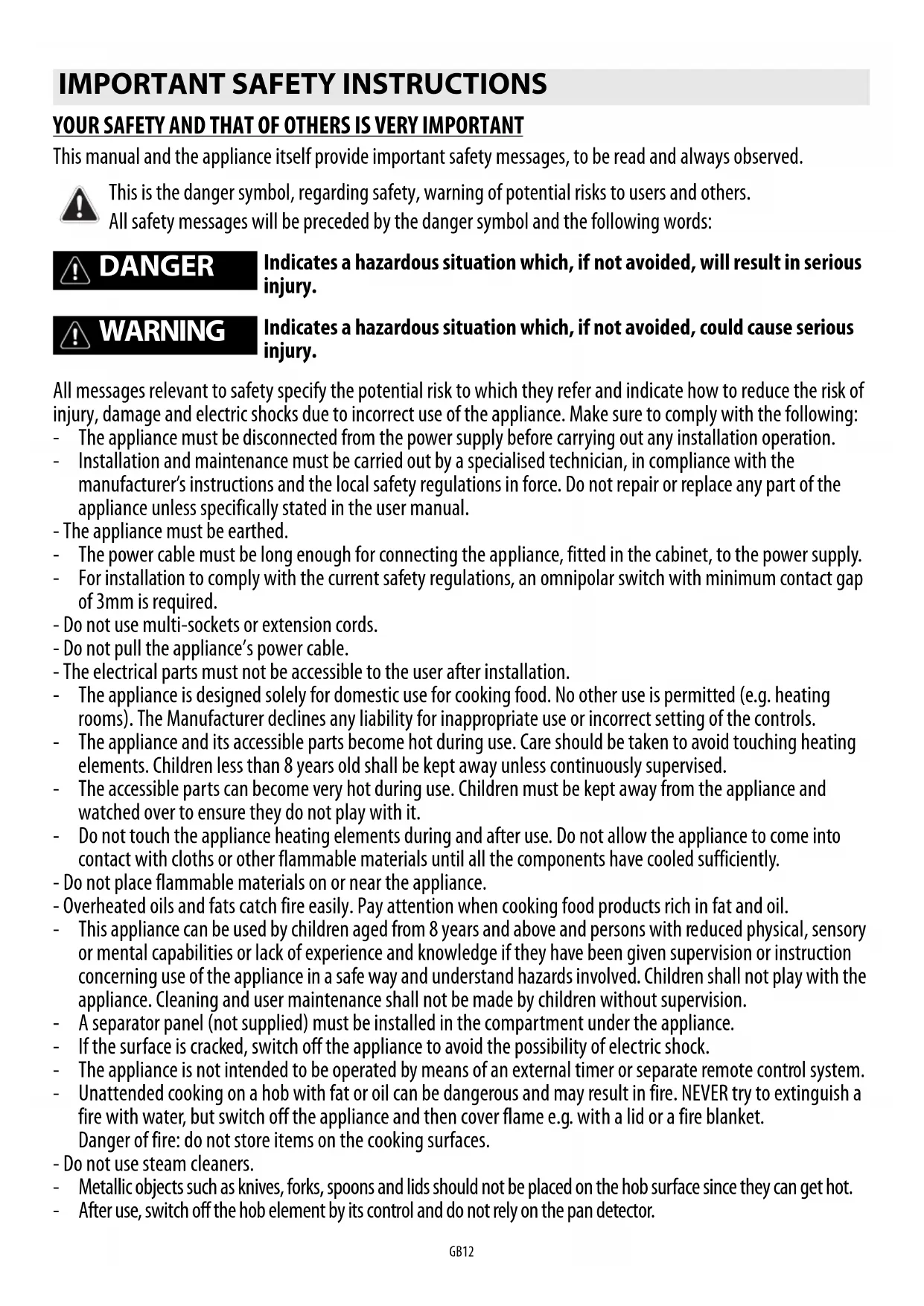 YOUR SAFETY AND THAT OF OTHERS IS VERY IMPORTANT This manual and the appliance itself provide important safety messages, to be read and always observed.